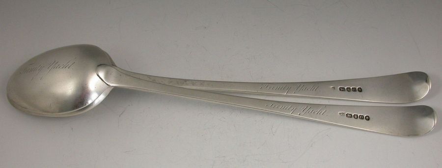 Rare Pair Georgian Silver Basting Spoons Trinity Yacht