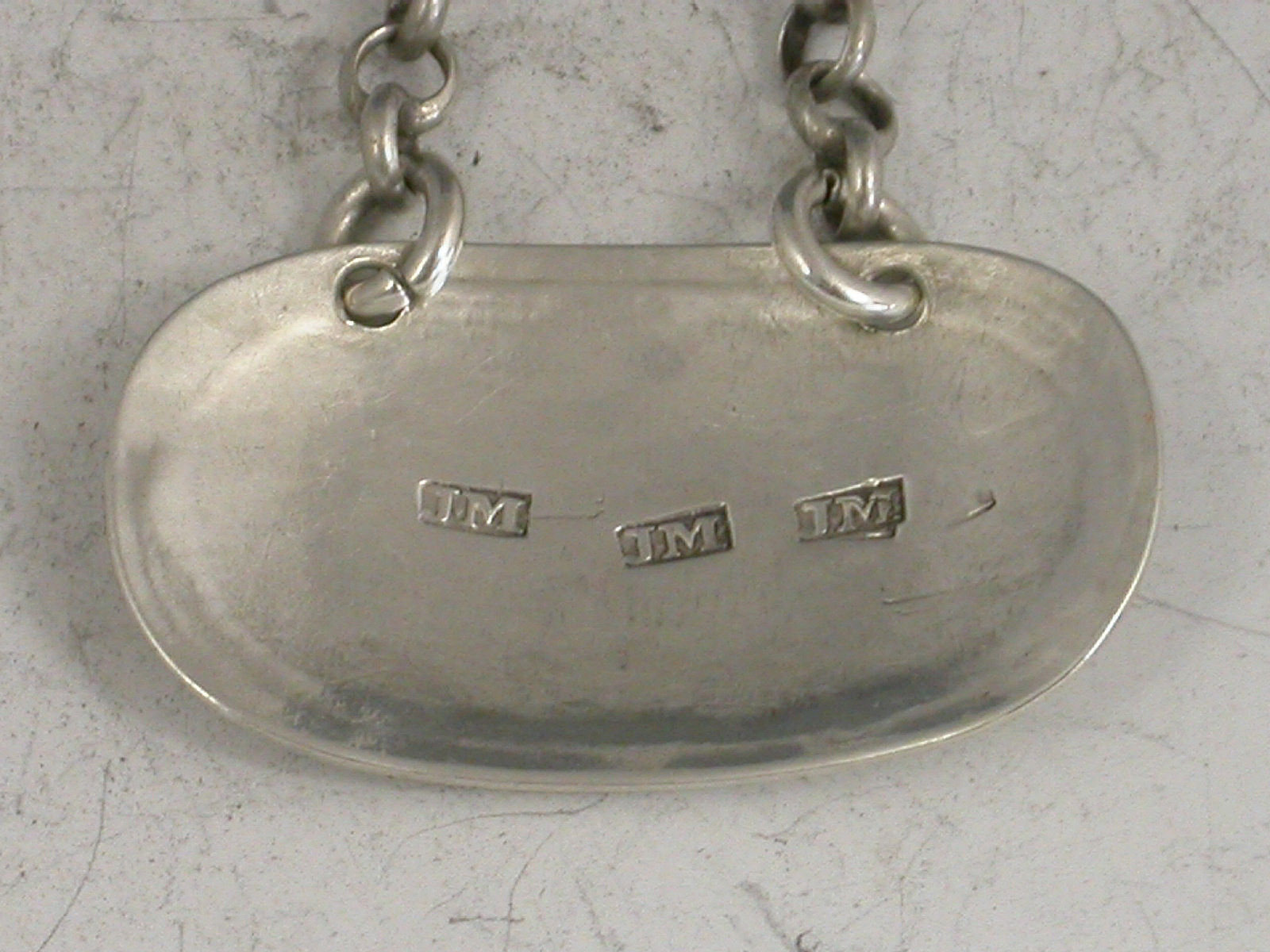 It is most likely that due to its form & construction this label was made in Birmingham. It could then have been purchased & retailed by John Mackie, a watchmaker. This was often the case with small items ie. wine labels at this period.