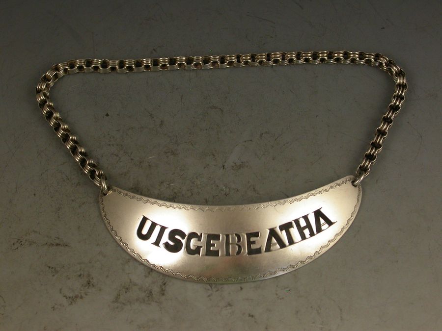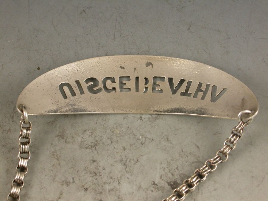 Rare Scottish Provincial Silver Wine Label 'Uisgebeatha'