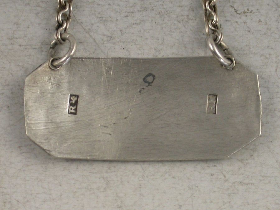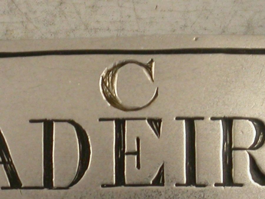 A rare Georgian Scottish Provincial silver Wine Label of narrow rectangular form with single reeded border, incised and niello filled for C.Madeira, probably for Cape or possibly Cercial Madeira.