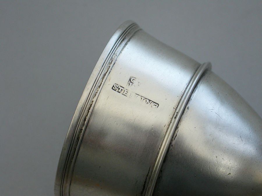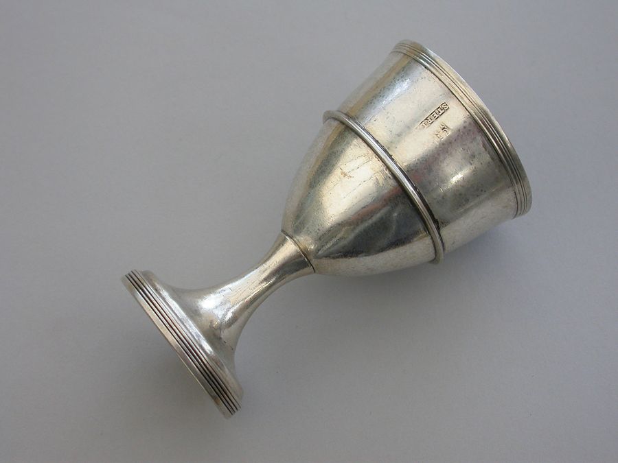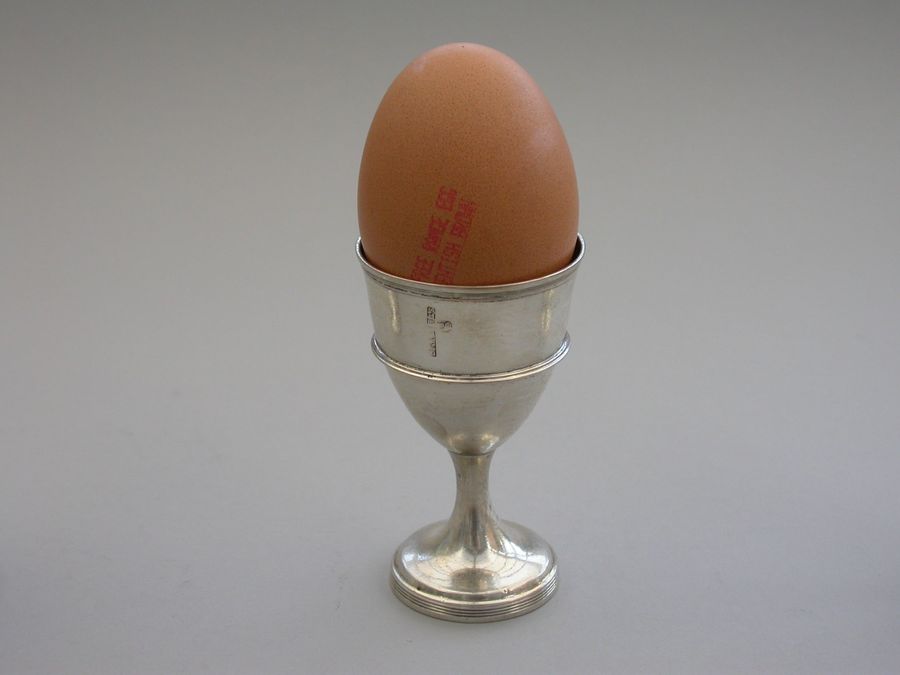 A rare set of four George III Irish Provincial Silver Egg Cups, of plain form with out-set reeded girdles and borders, raised on circular spreading pedestal bases with reeded rims.