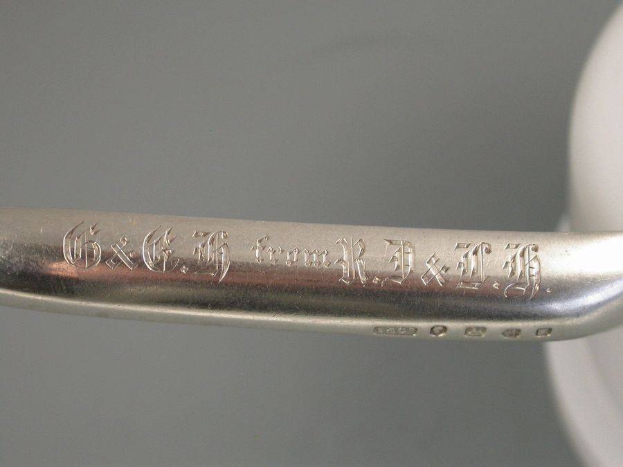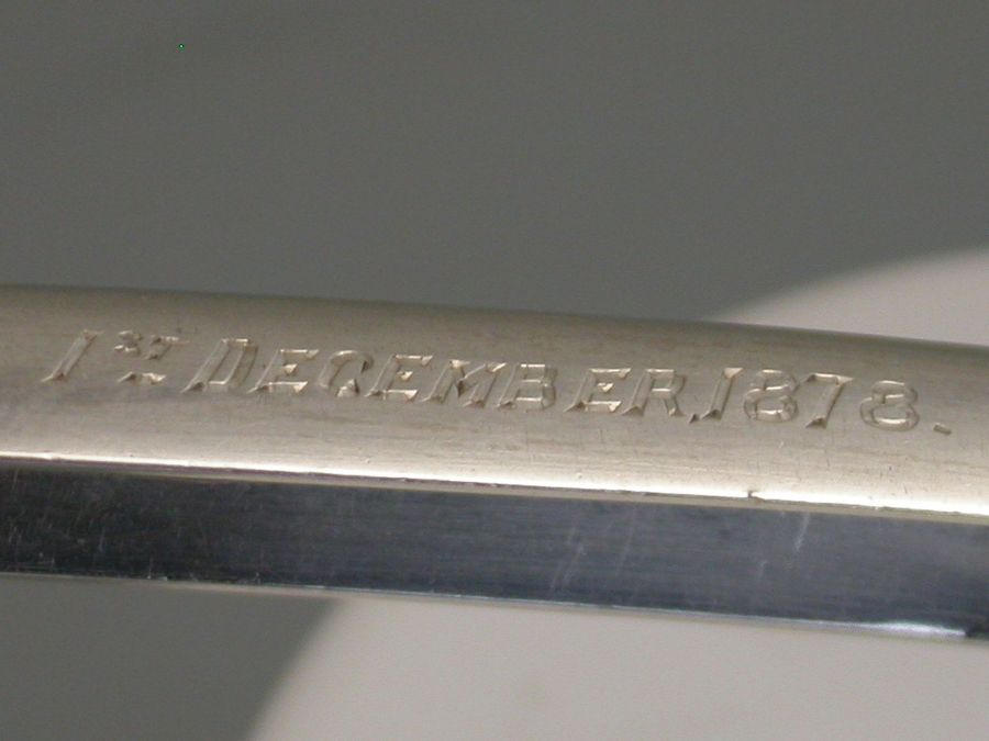 A very rare Victorian Provincial silver Marrow Scoop of slim elegant form with double reeded stem. The larger bowl with presentation inscription dated 1st December 1878.