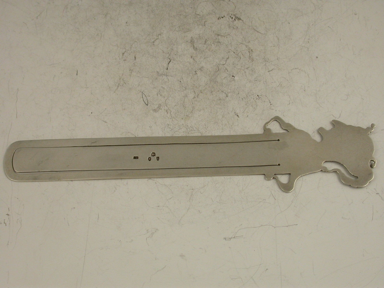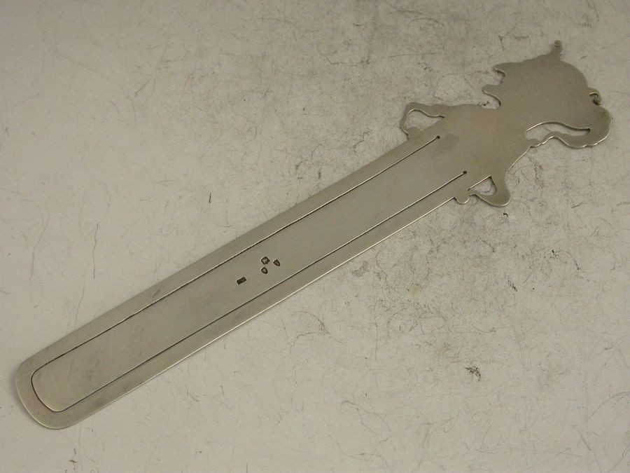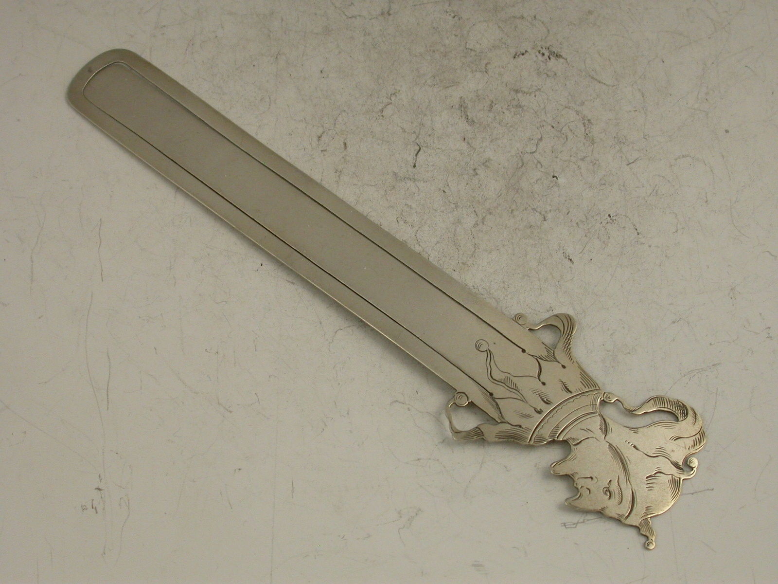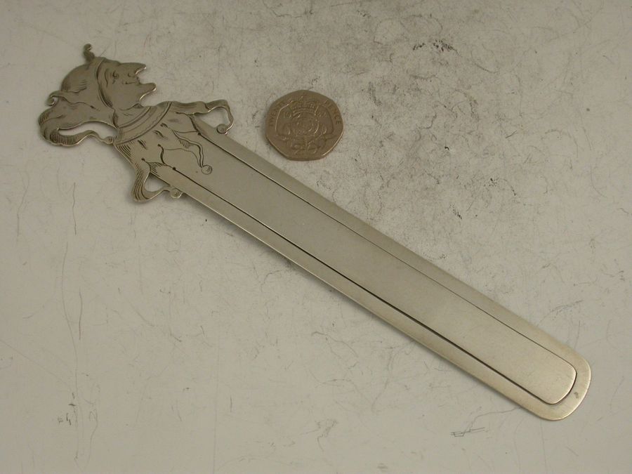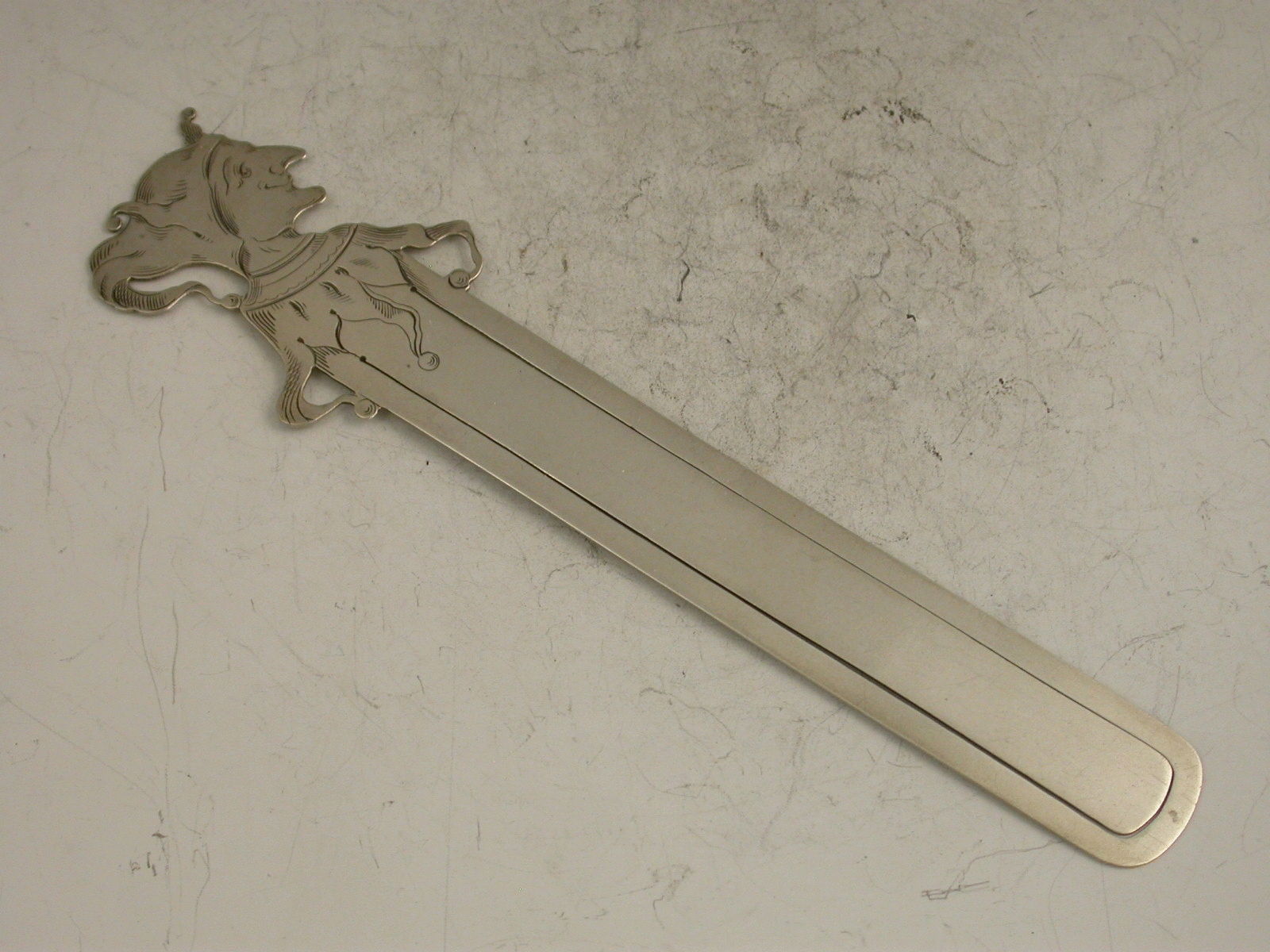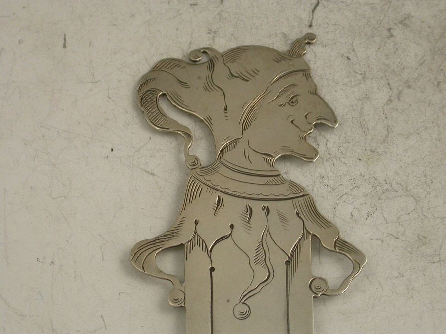 A rare and unusual Victorian silver bookmark of a large size, the terminal formed as a Jester with finely engraved features.