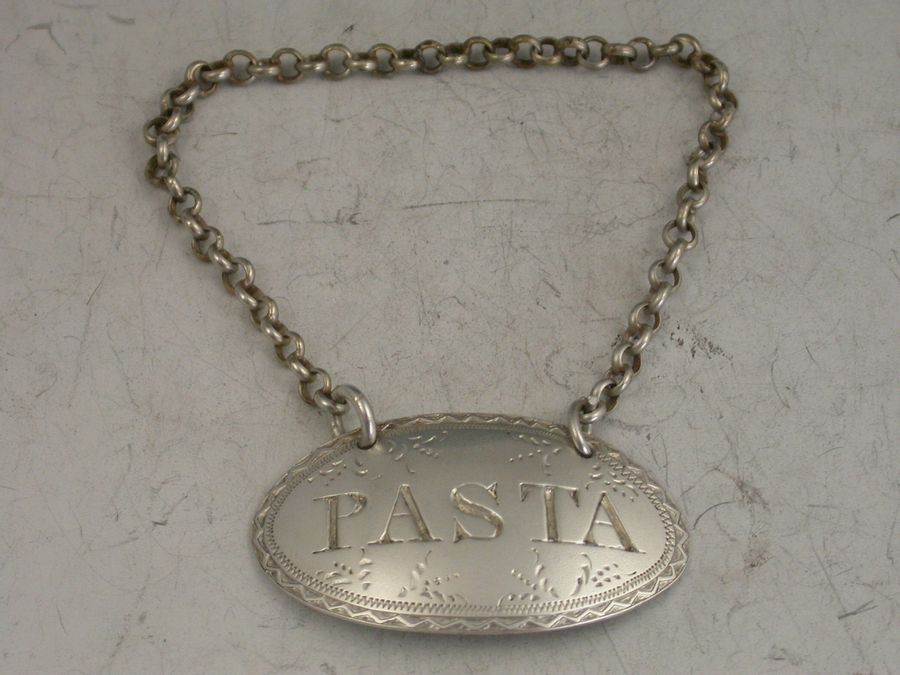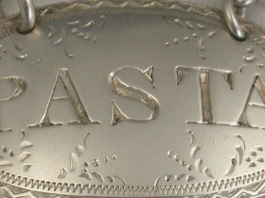 Rare Victorian Antique Silver Wine Label 'Pasta'