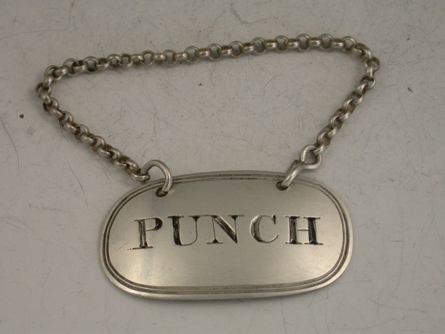 Rare Victorian Antique Silver Wine Label 'Punch'