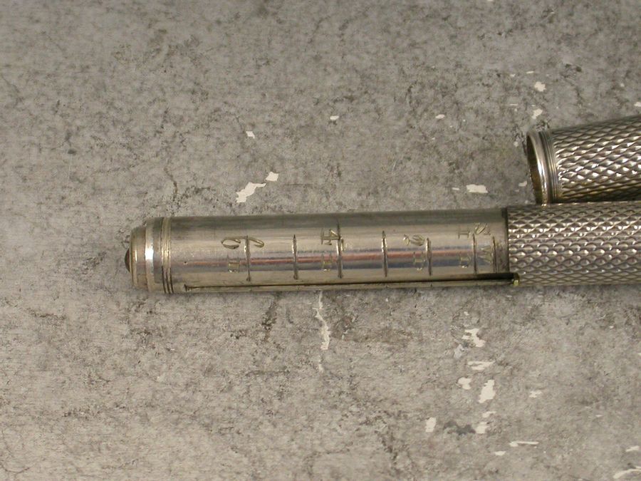 A rare Victorian German silver Pocket Telescope Letter Balance of tubular form, pulling apart at the centre, the body with engine turned decoration, a chequered wafer seal to one end and a bloodstone seal to the other. The scale calibrated in 1/2 ounces up to 3 ounces and 1D to 6D.
