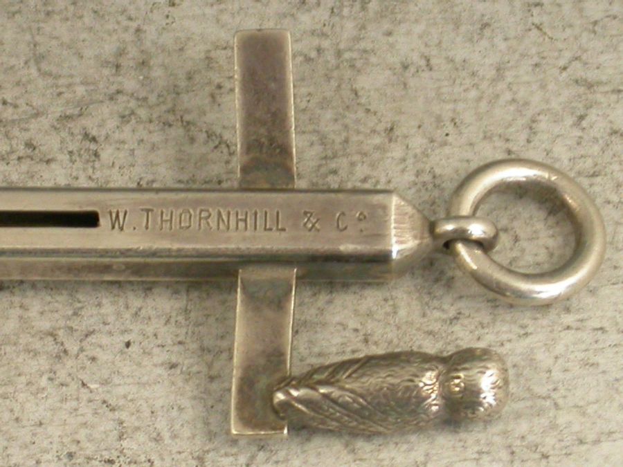 The pencil extended via a push button sliding mechanism and the arms of the sign post engraved with the names of two Seaside Towns in Kent - Hythe and Dover. Stamped W. Thornhill & Co.