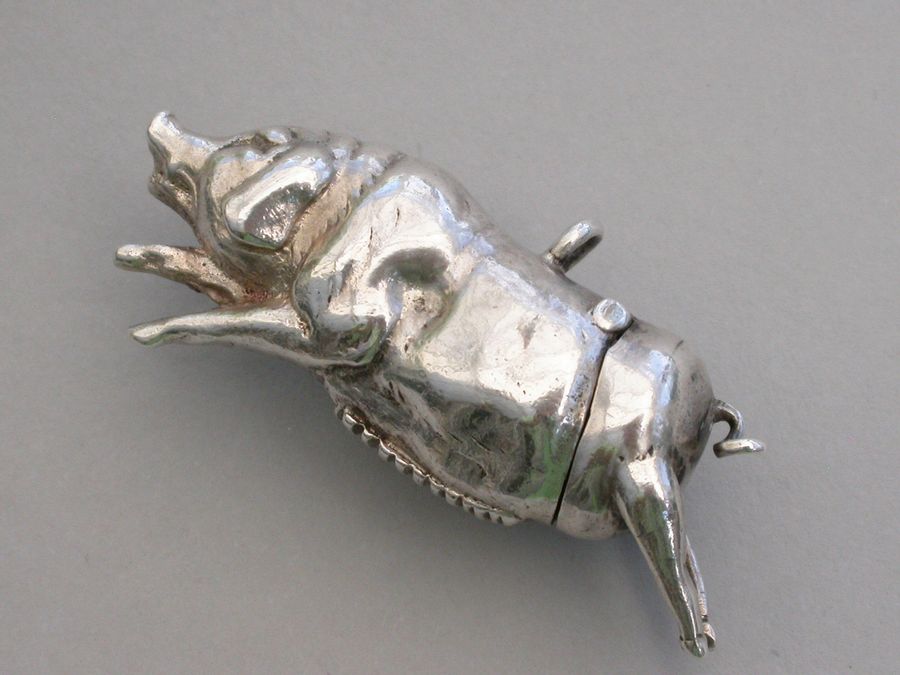 Rare Victorian Novelty Silver Running Pig Vesta Case