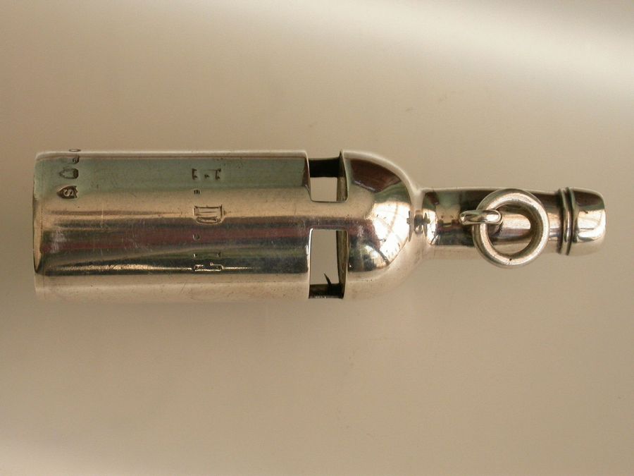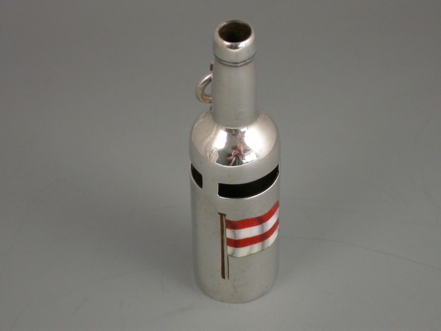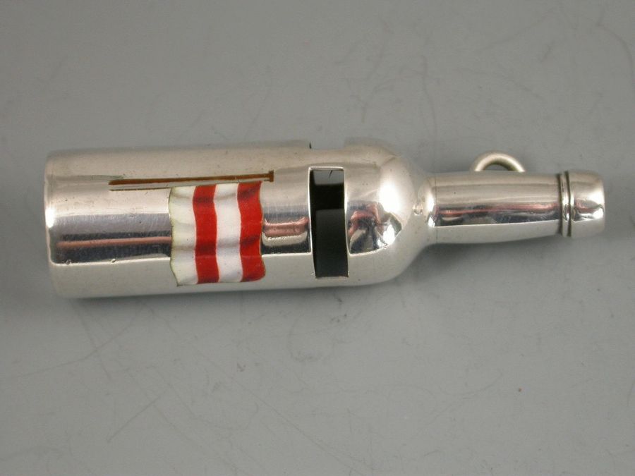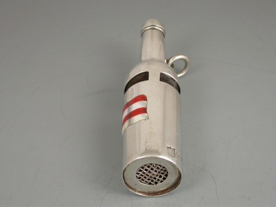 Rare Victorian Silver Beer Bottle Whistle with Enamelled Flag