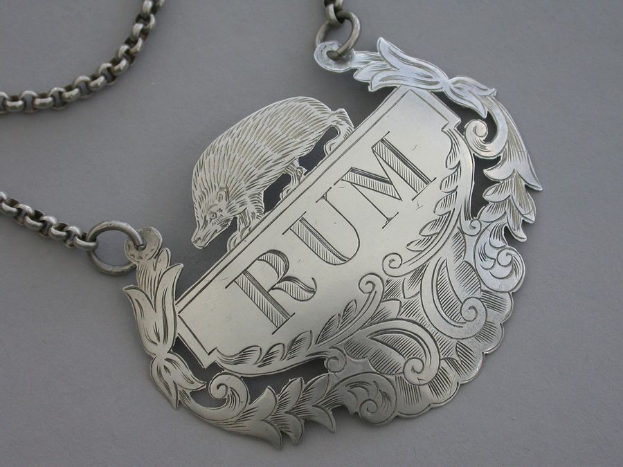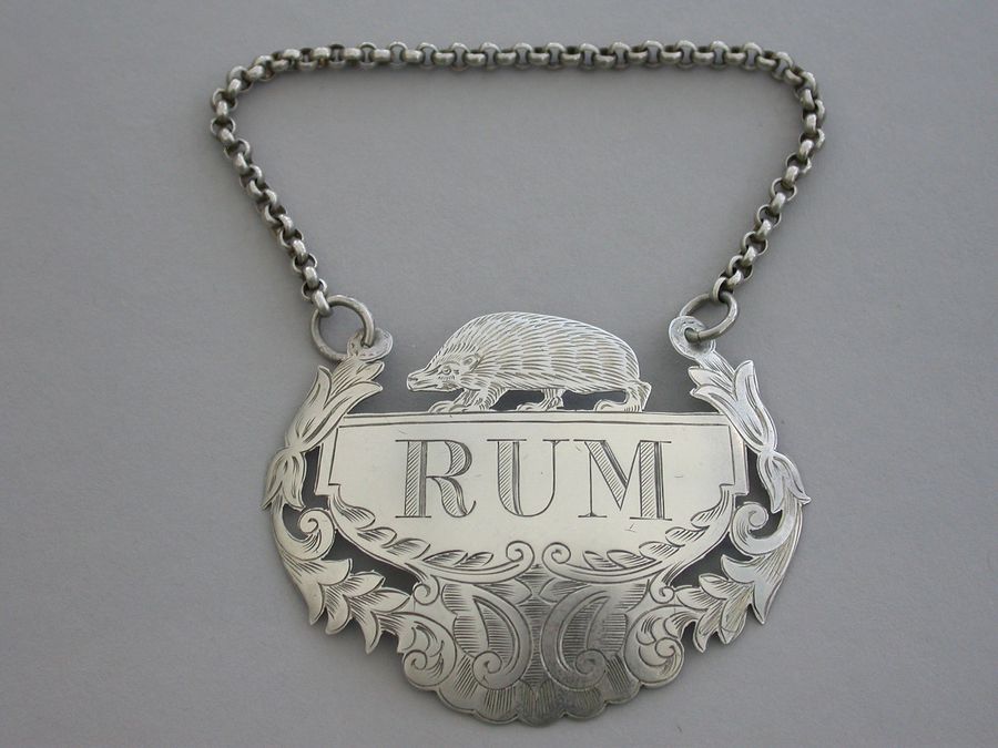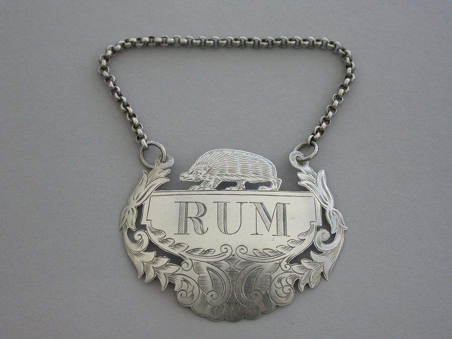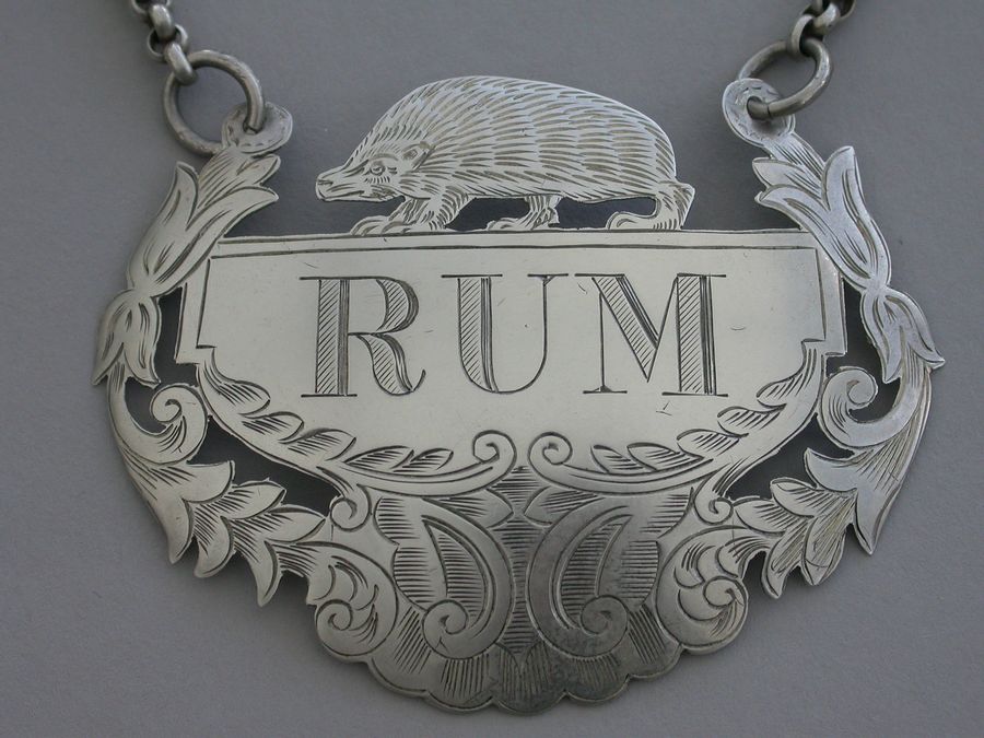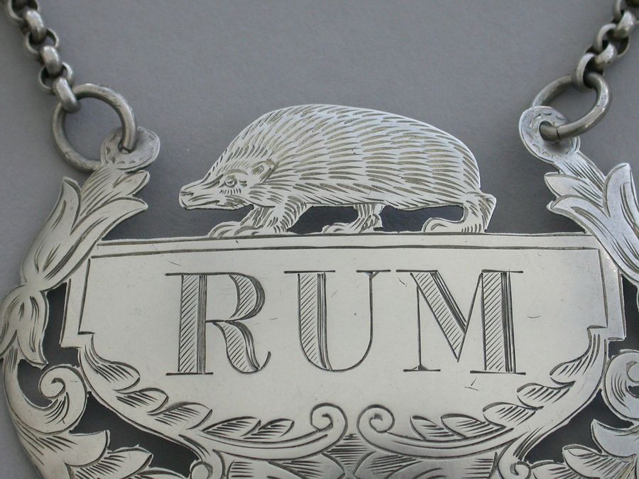 Rare Victorian Silver Hedgehog Wine Label 'Rum'