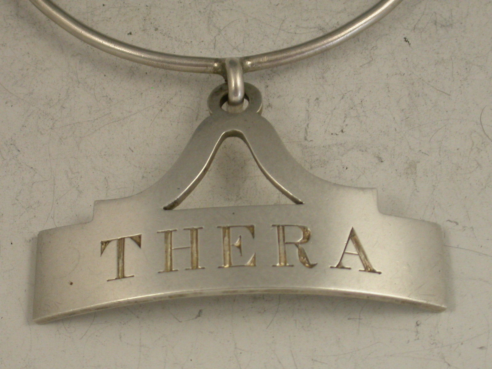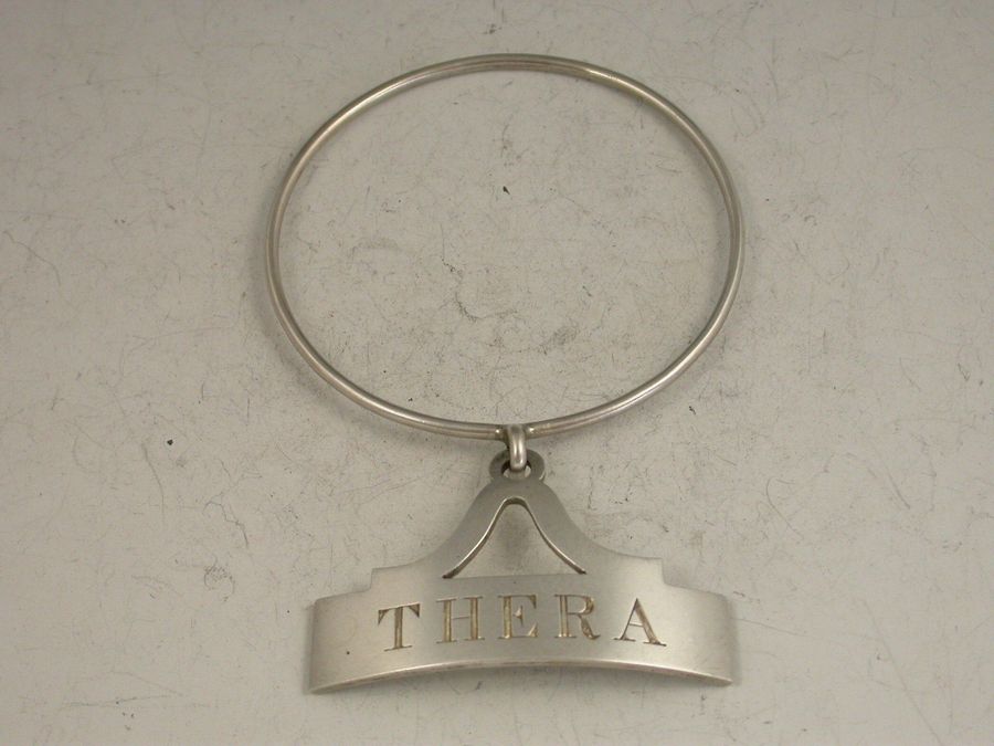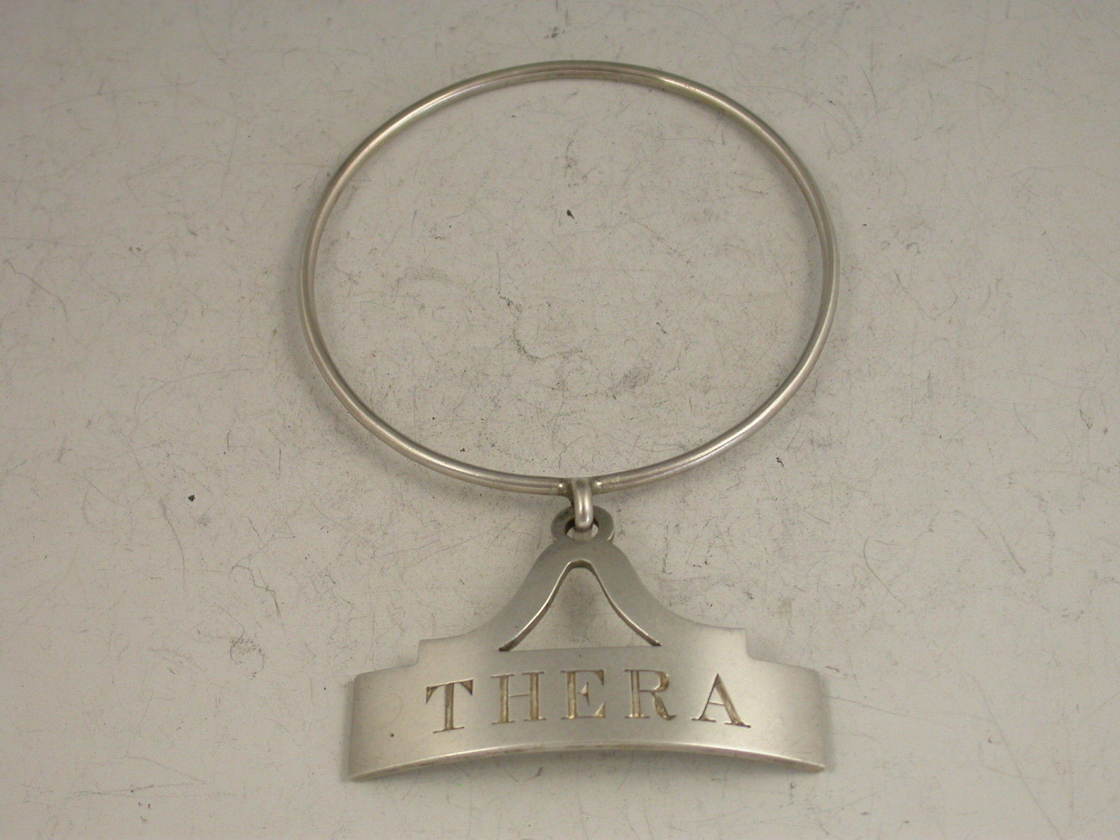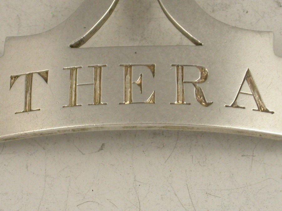 Rare Victorian Silver Neck Ring Wine Label 'Thera'