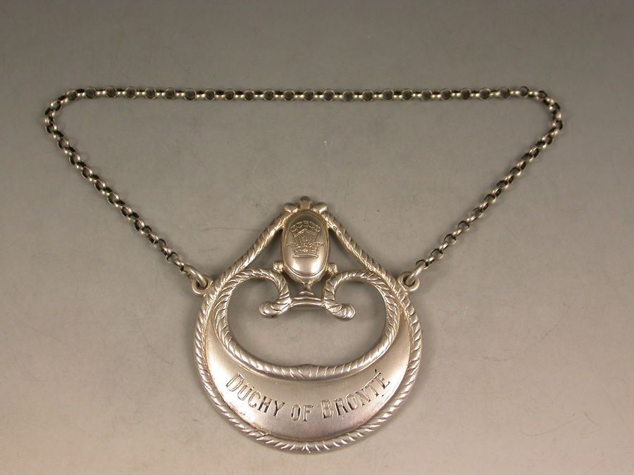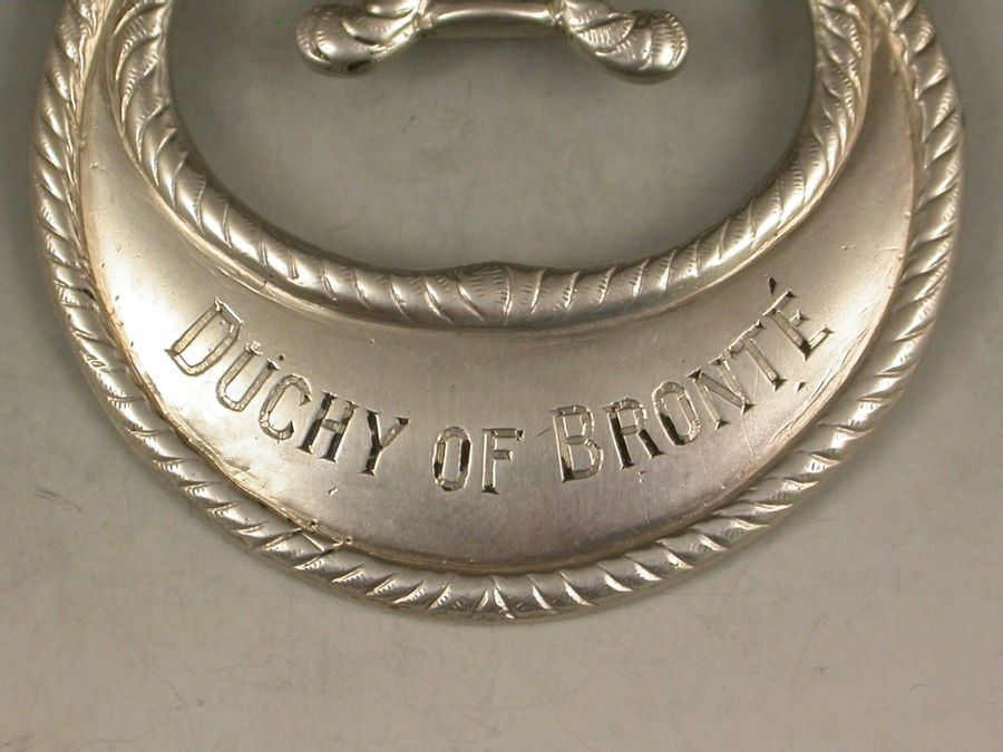 Rare Victorian Silver Wine Label 'Duchy of Bronte' Nelson Interest
