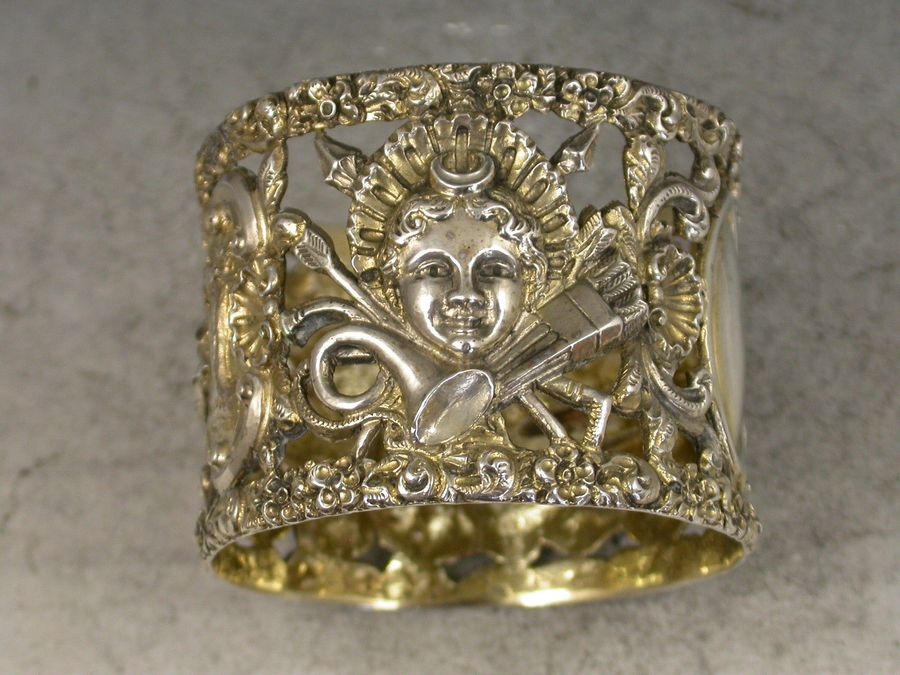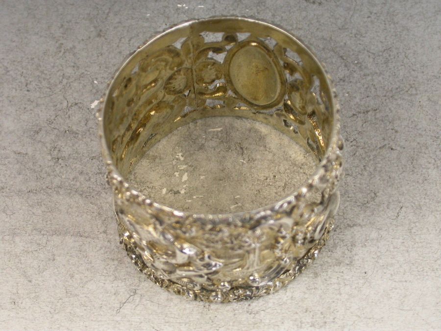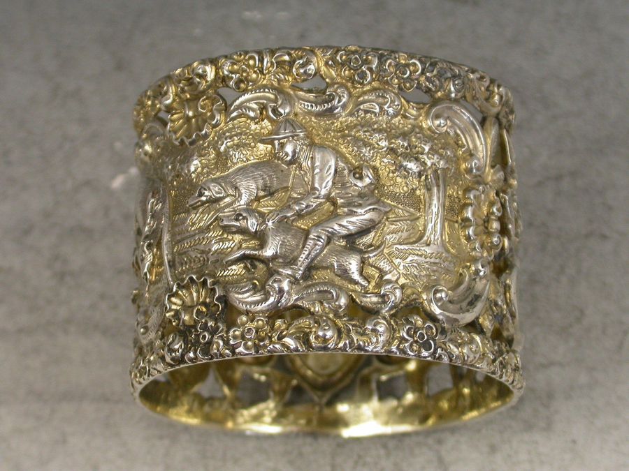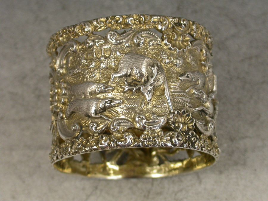Rare Victorian Stag Hunt Pattern Silver Gilt Napkin Ring