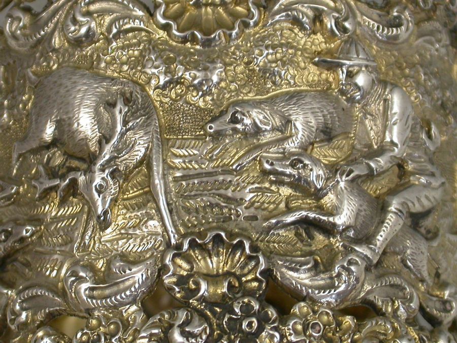 The Stag Hunt is a rare regency pattern designed for Rundell Bridge & Rundell, by Stothard and first made by Paul Storr.