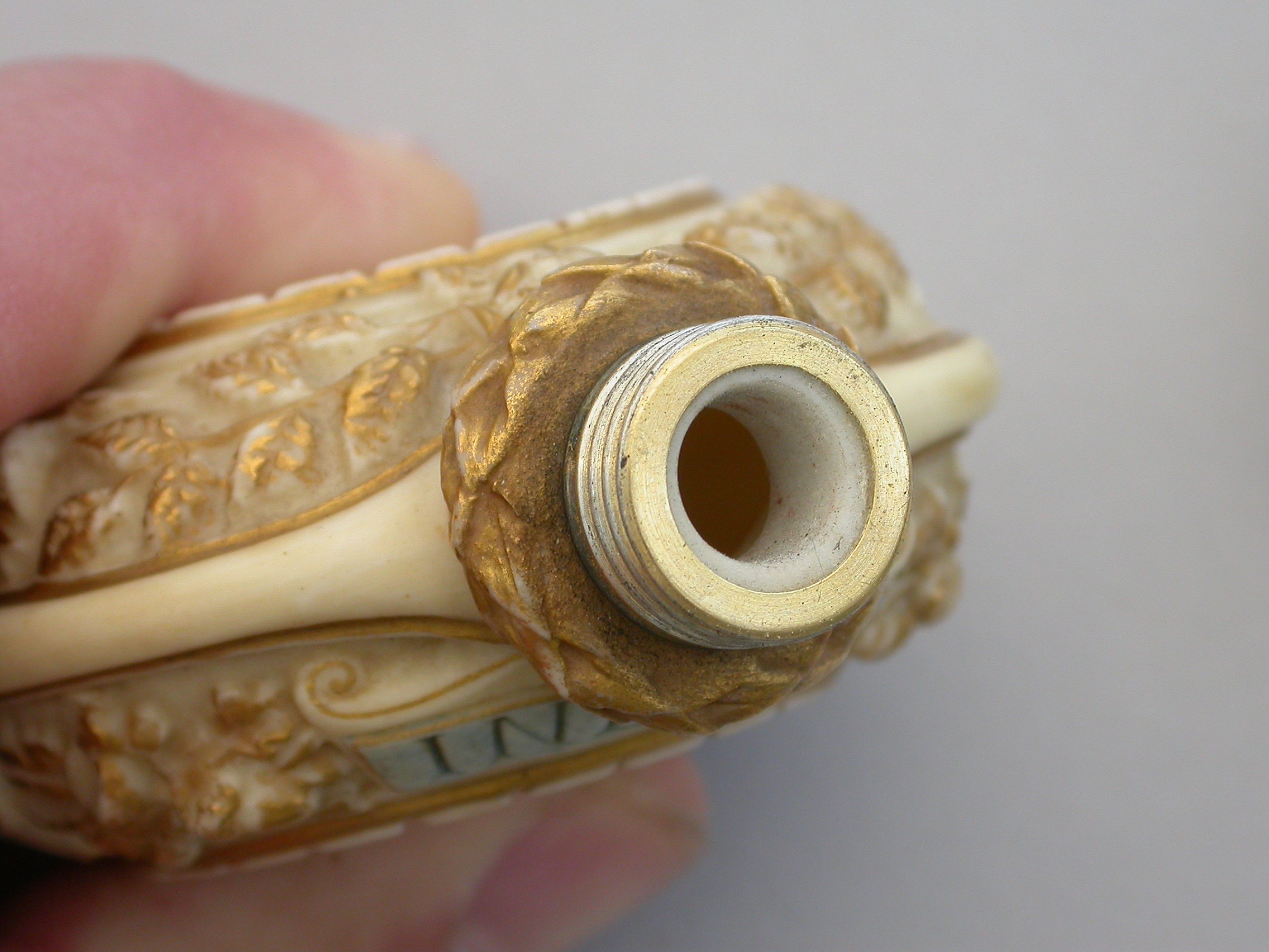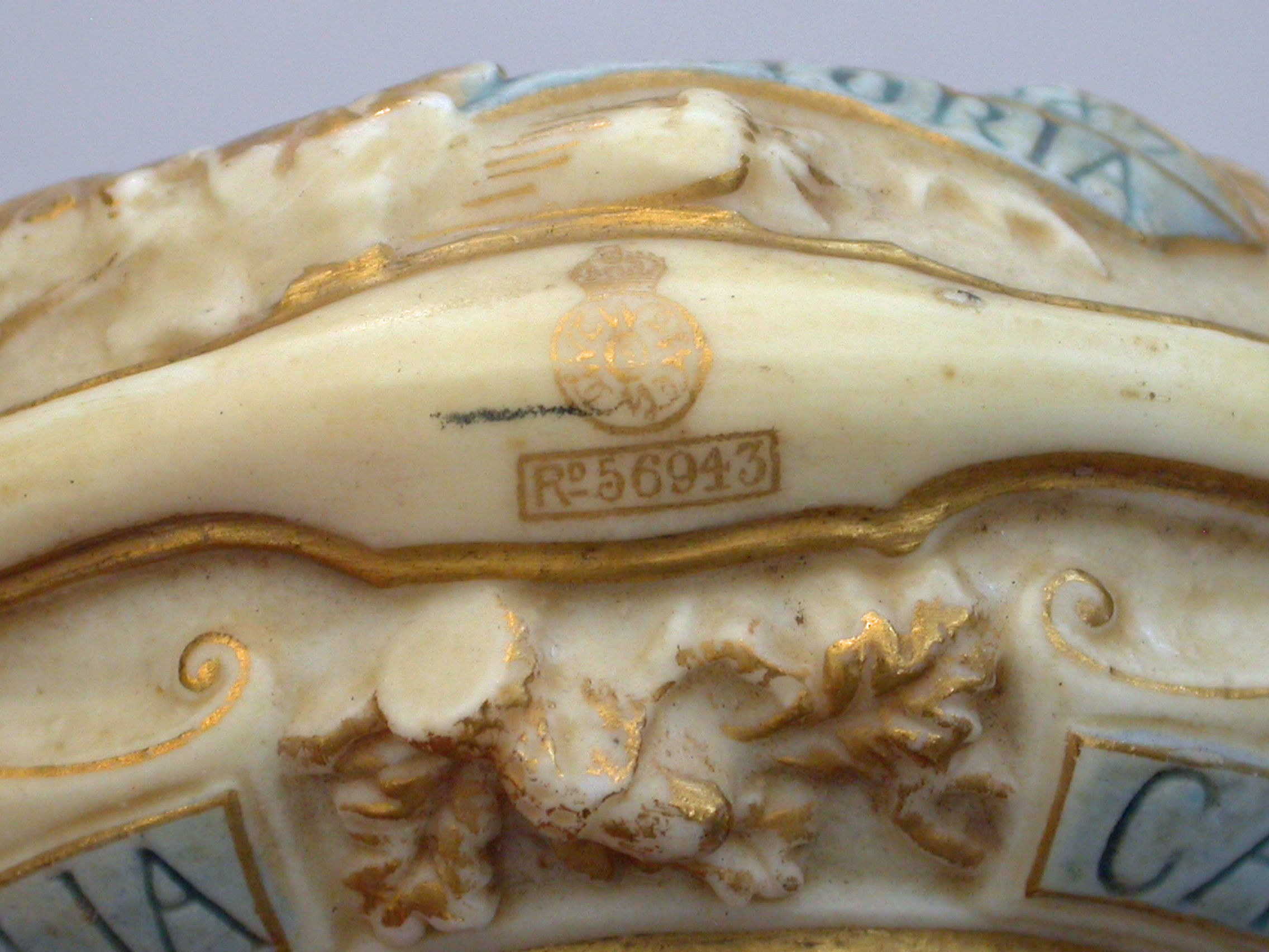 Gilt Royal Worcester Crown mark and registered design number 56943 to the base. c1887
