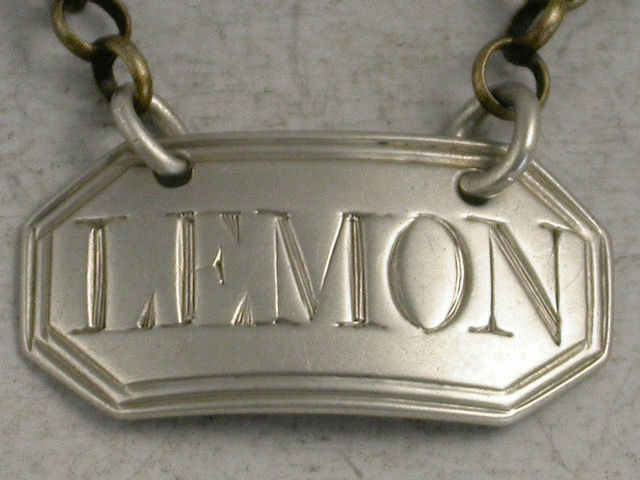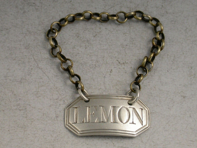 A good George III silver Sauce Label of cut cornered rectangular form with double thread border, incised for Lemon.