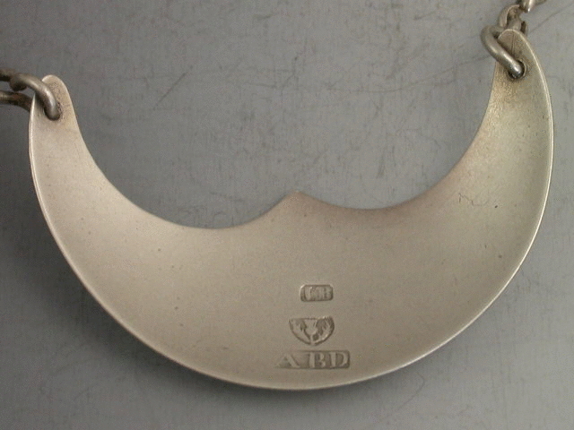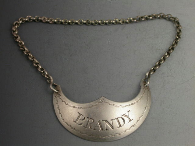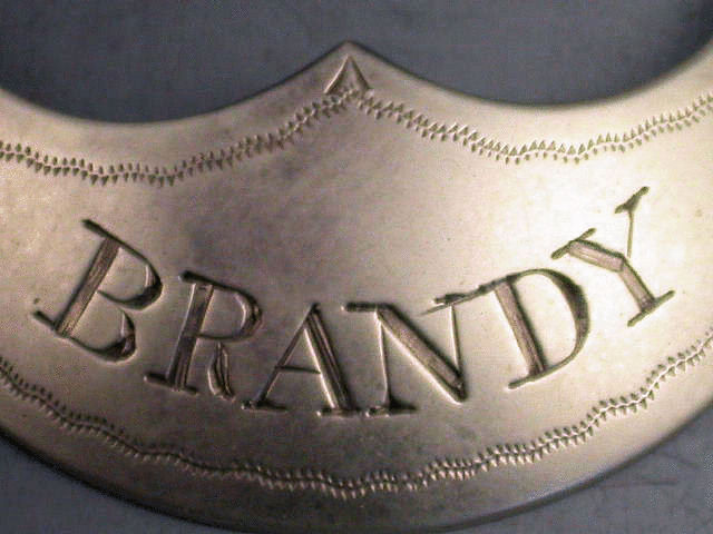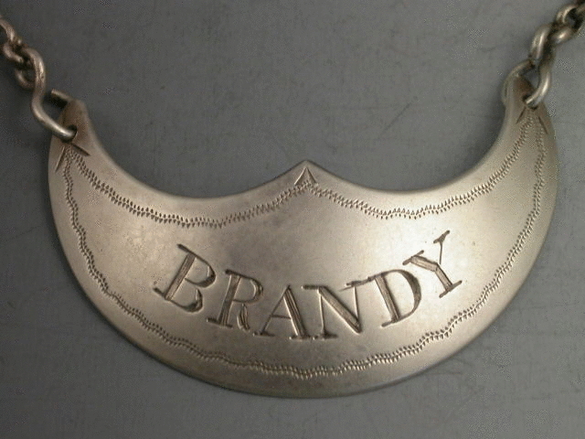 An extremely rare early Victorian Scottish Provincial silver Wine Label of crescent form with central peak, engraved with wavy band of pricked decoration, incised for BRANDY.