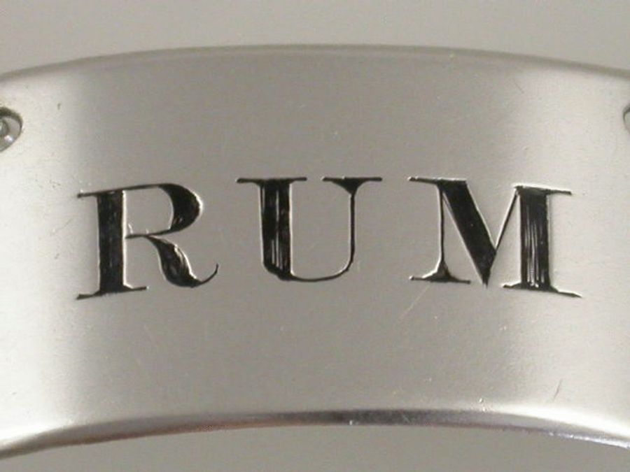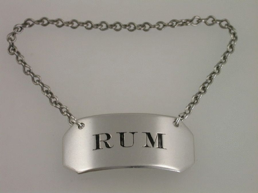 A very rare Scottish Provincial silver Wine Label of plain rectangular form with cut corners, incised and niello filled for Rum.