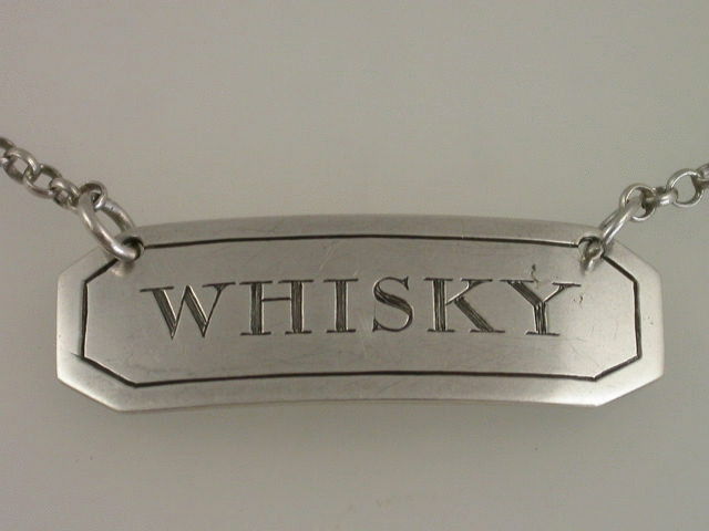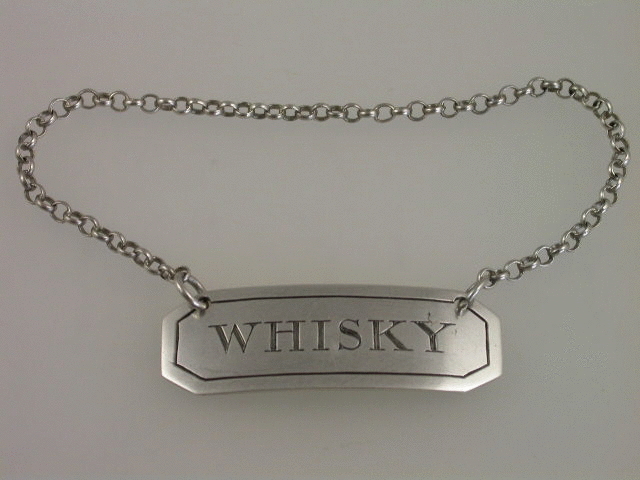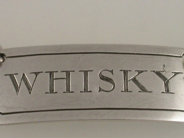 An extremely rare early 19th century Scottish Provincial silver Wine Label of narrow rectangular form, with cut corners and single reed border, incised for WHISKY.