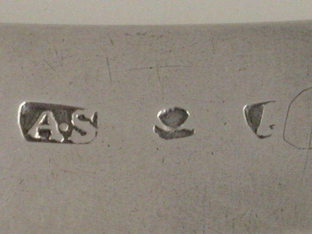 By Alexander Stewart, Inverness, c1810.It is marked with maker’s mark AS, struck twice and his characteristic “Cup & Saucer” mark, which is in fact a capital letter C which is poorly struck or a worn punch (See: Highland Gold & Silversmiths by G.P.Moss & A.D.Roe page 160).