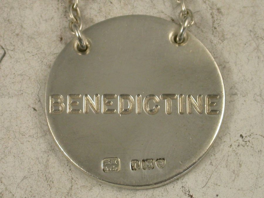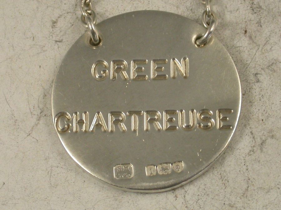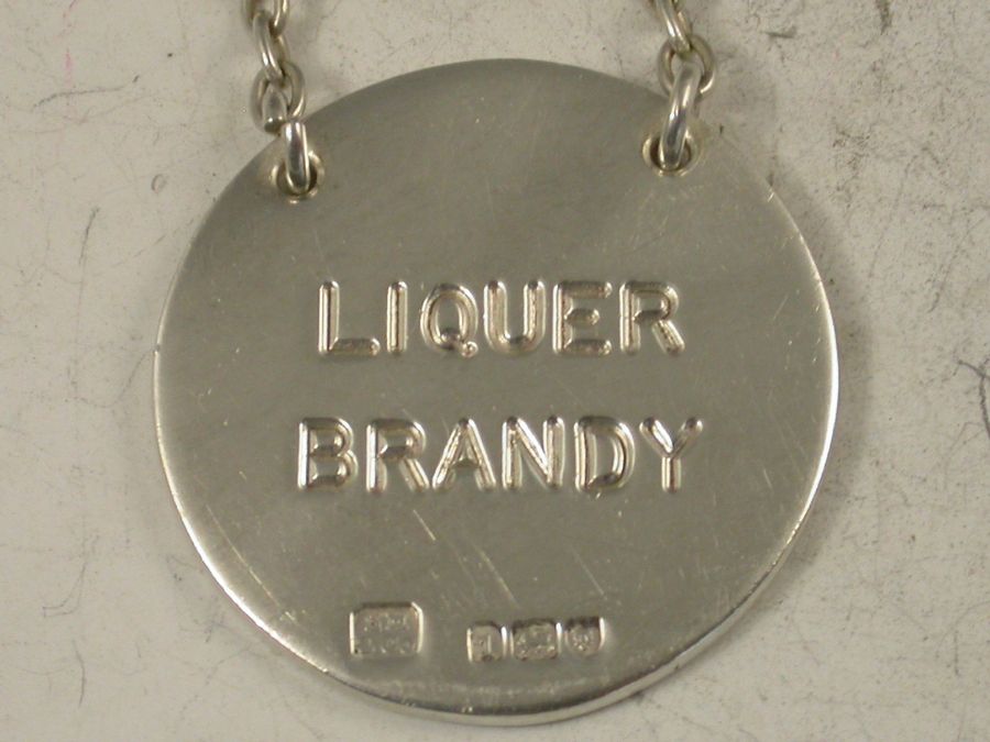 An unusual set of three Edwardian silver Liqueur Labels of plain disc shape and of a heavy gauge, engraved both front and back with the unusual titles; Benedictine and Maraschino, Liquer Brandy and Ginger Brandy, Prunelle and Green Chartreuse.