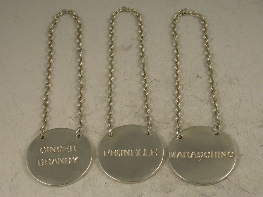 Set 3 Edwardian Silver Double Sided Liqueur Labels 'Rare Names'