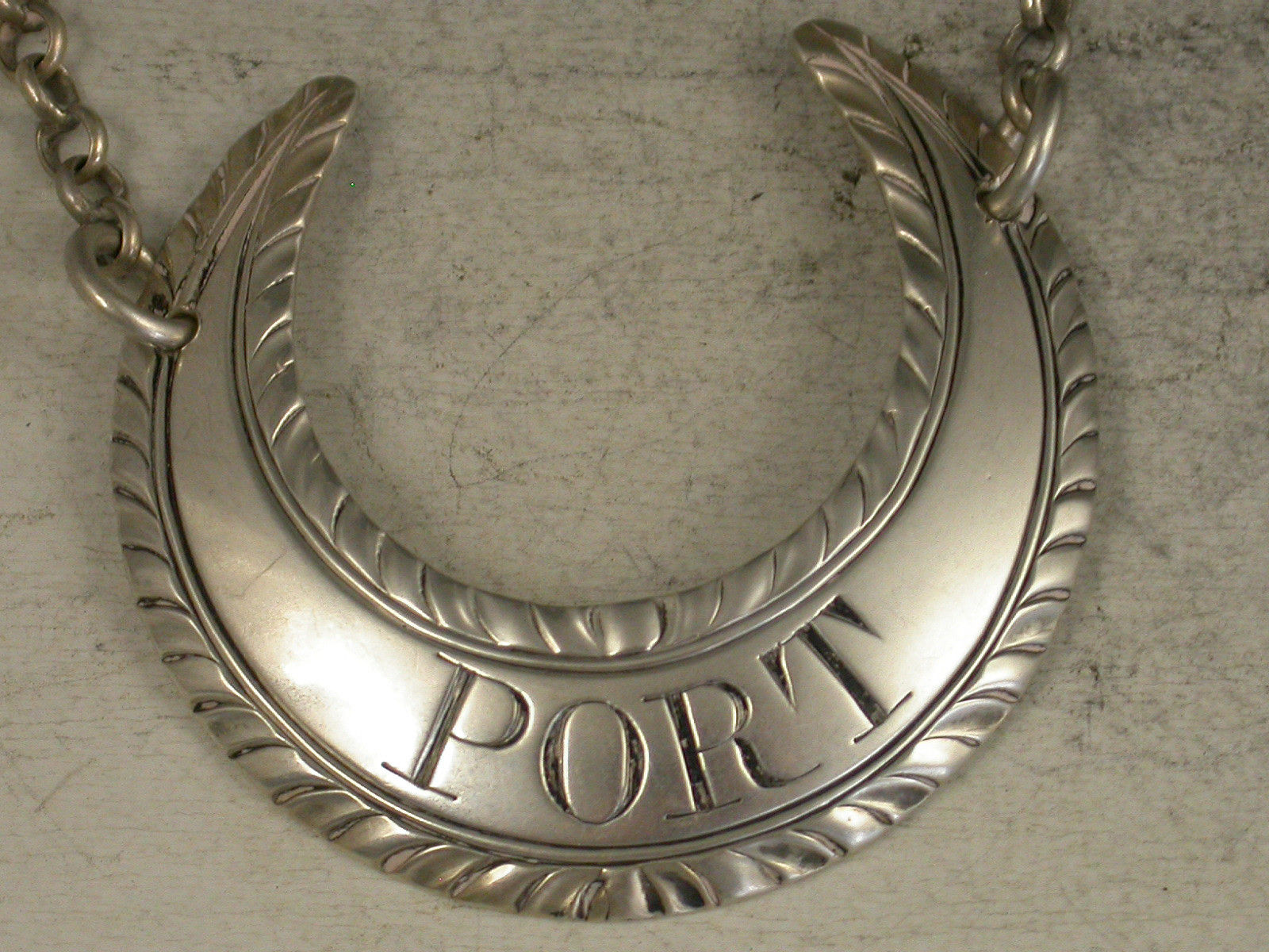 A good set of three George III 18th century silver Wine Labels of crescent form with feather edge borders, incised for Port, Sherry and Madeira.