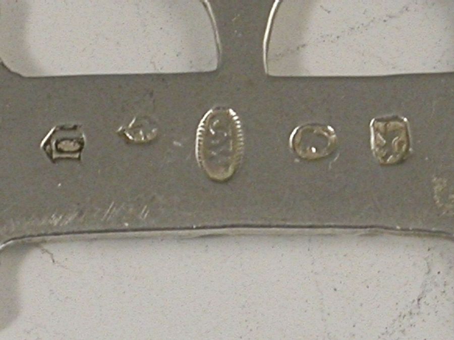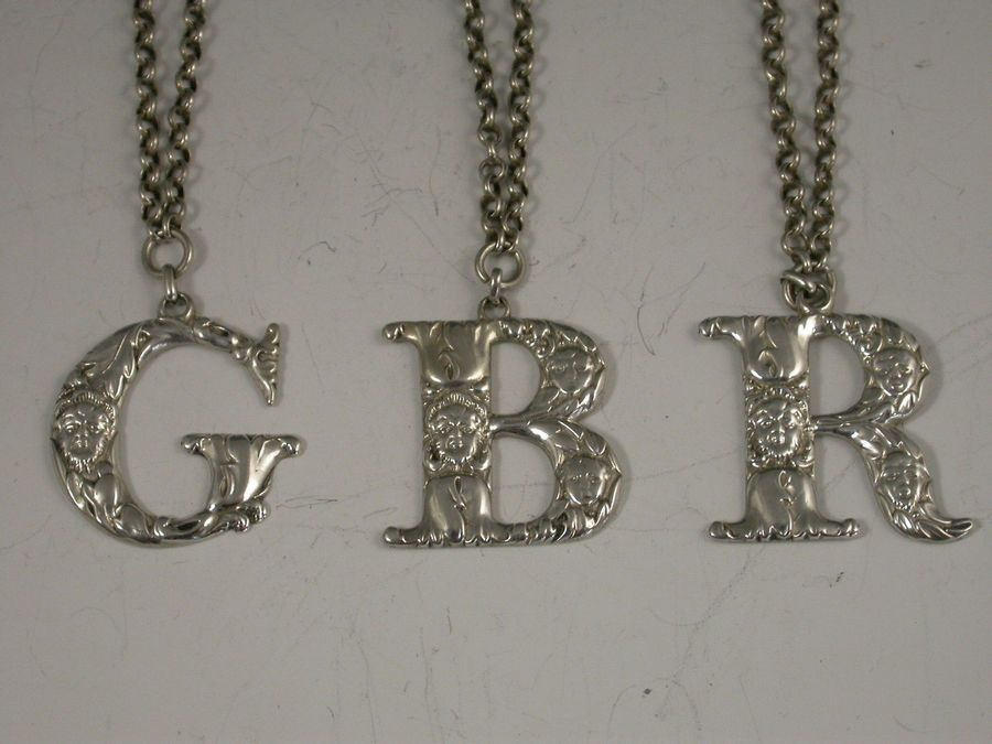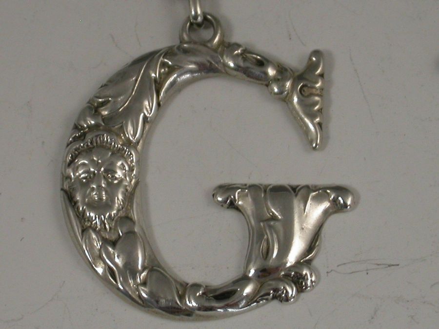 A good set of three George III cast silver Spirit Labels of initial letter form for G (Gin) B (Brandy) and R (Rum), decorated with mask heads amongst acanthus leaves.