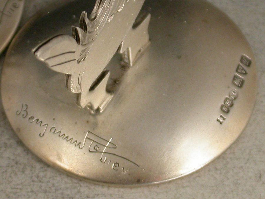Set 3 George V Novelty Silver 'Farmyard Animal' Menu Holders - Benjamin Rabier