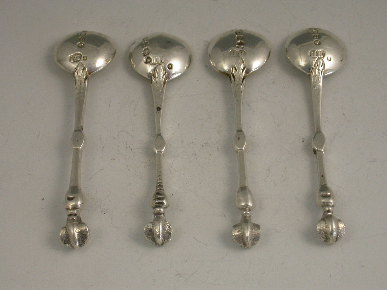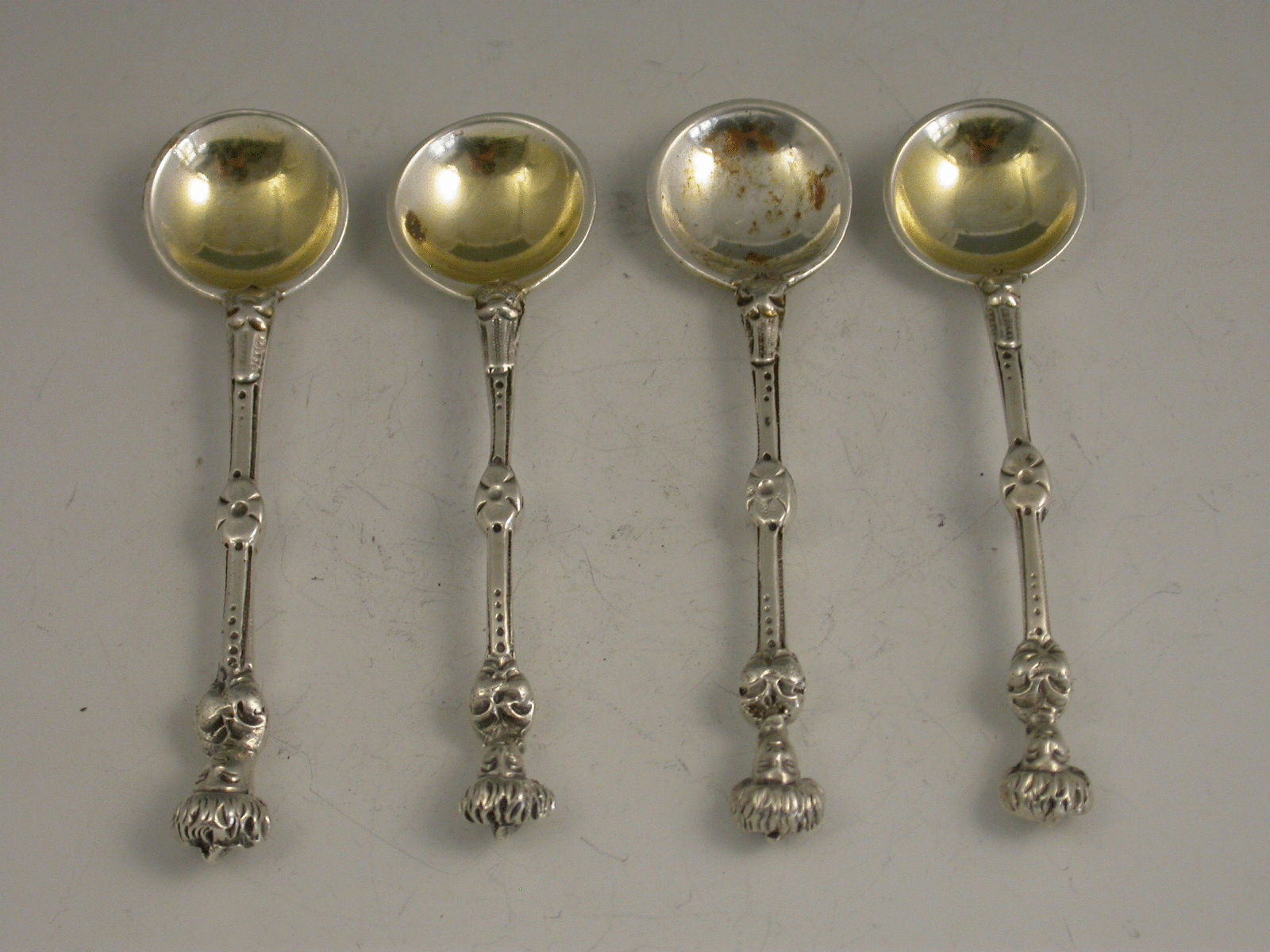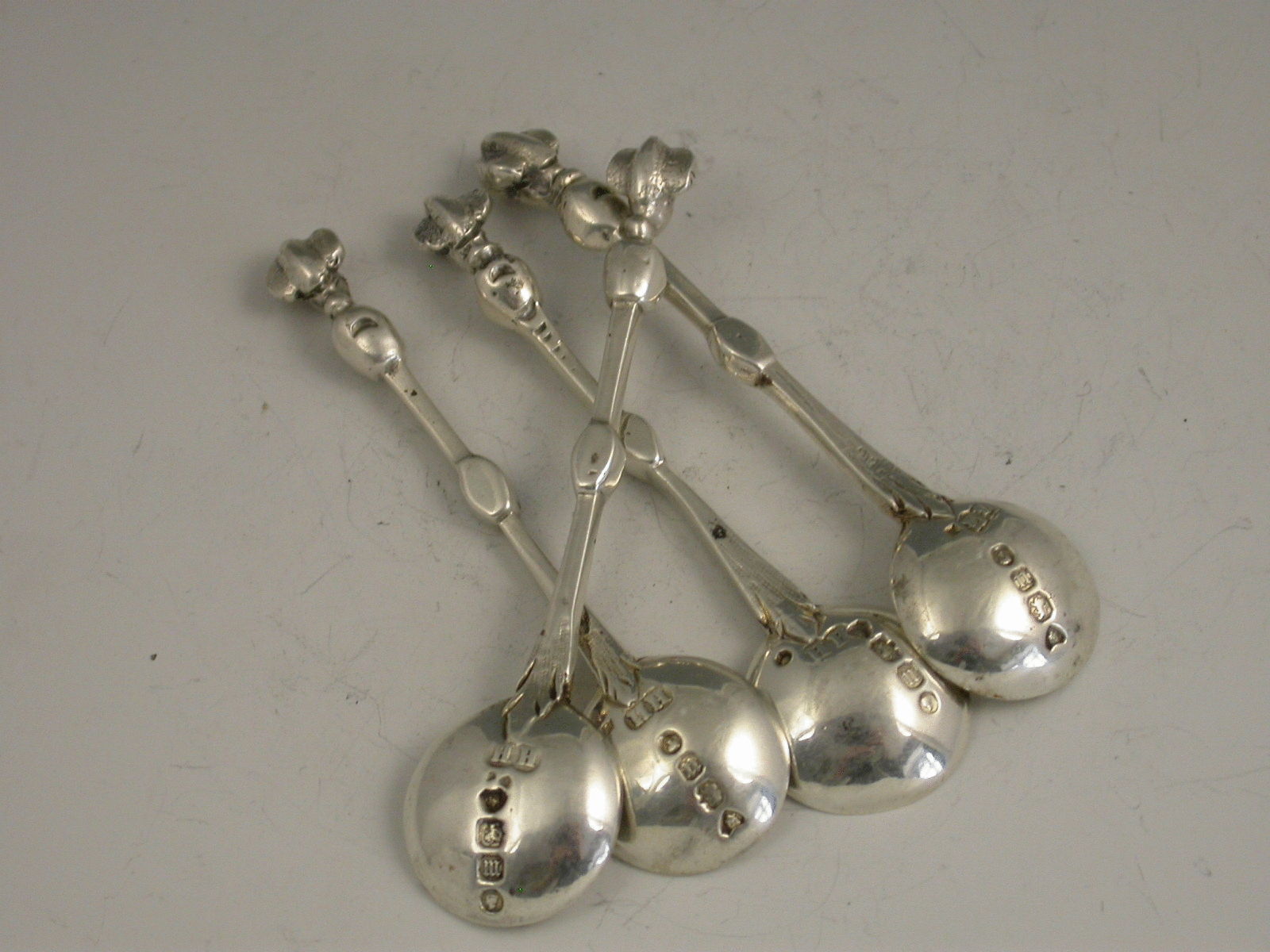 Set 4 Cast Silver Salt Spoons 'Blackamore Head' Terminals