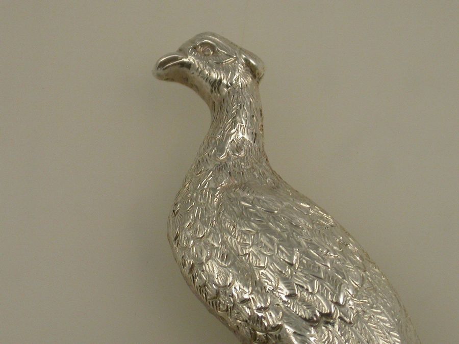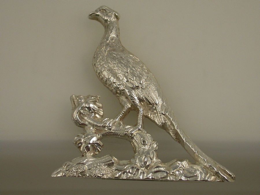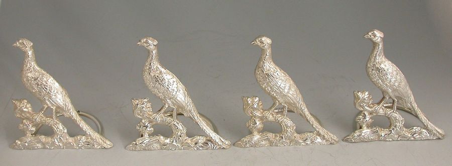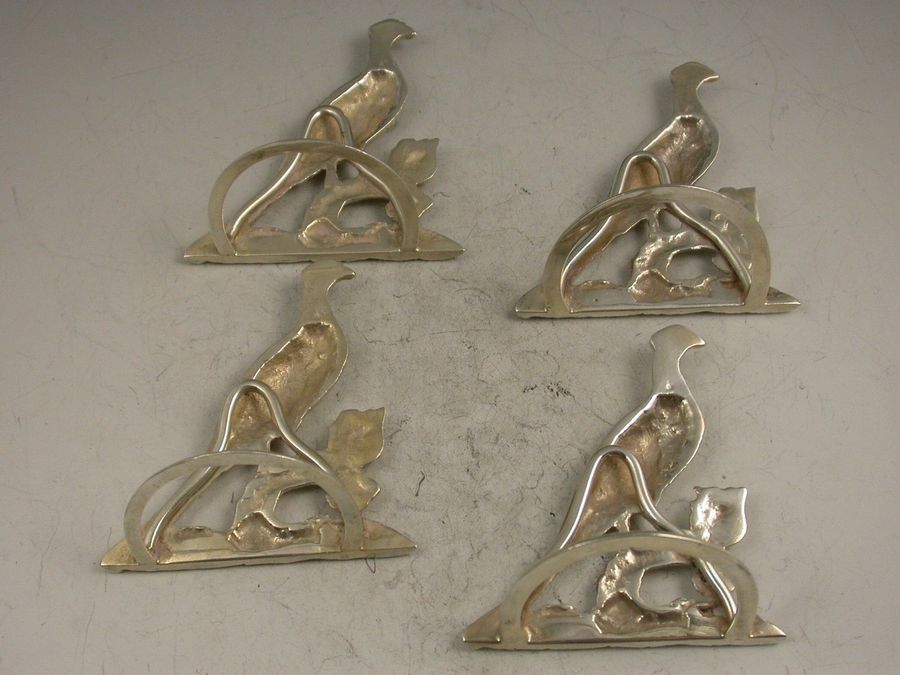 Set 4 Early 20th Century Large Cast Silver Pheasant Menu Holders