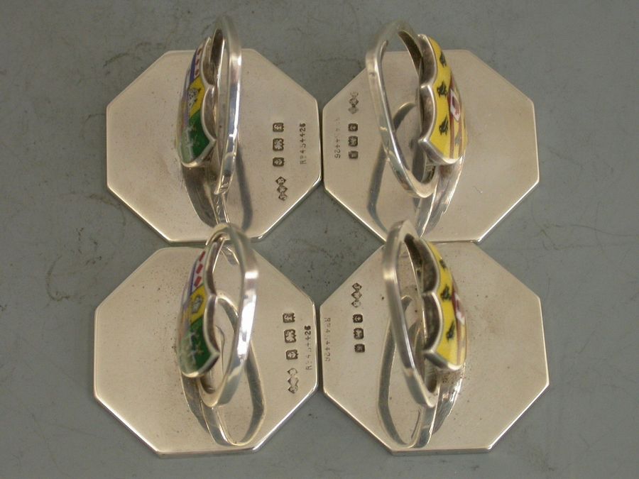 Set 4 Edwardian Cased Silver & Enamel Oxford University Menu Holders