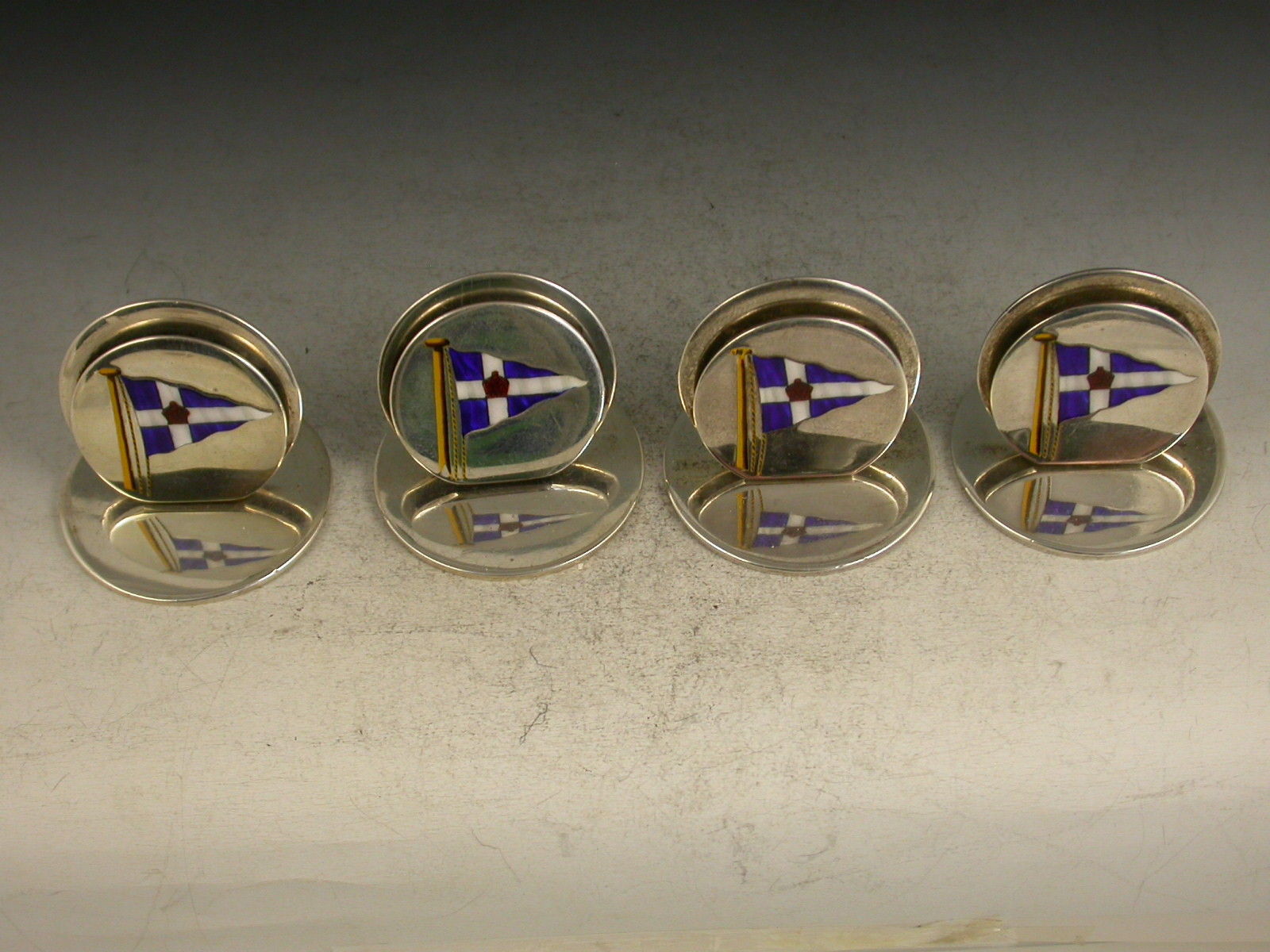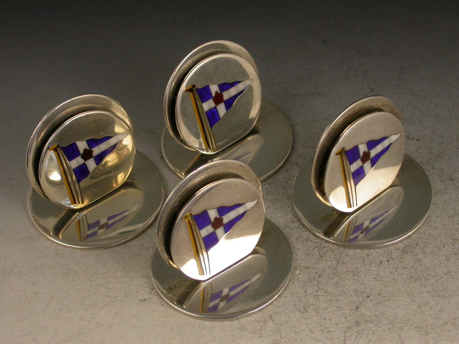 Set 4 Edwardian Silver & Enamel Menu Holders ' Royal Thames Yacht Club Burgee'