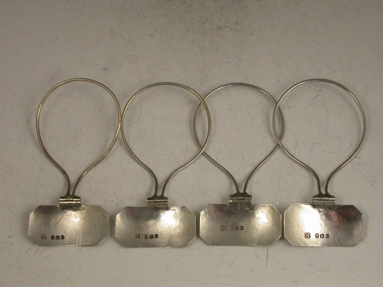 Set 4 George III Antique Silver Neck Ring Wine Labels