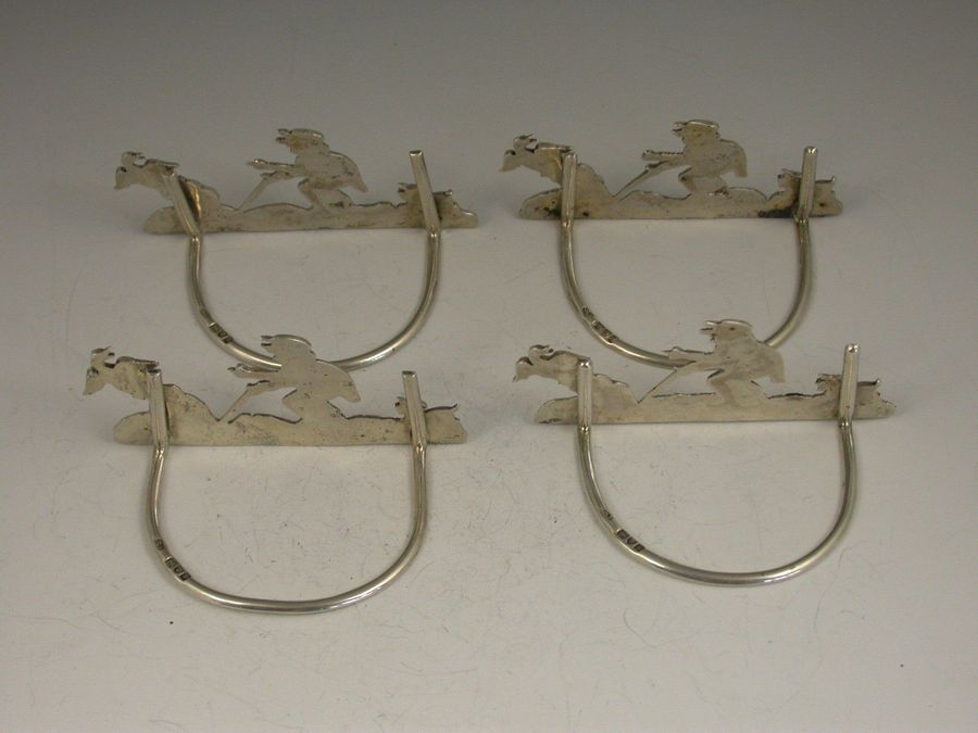 Set 4 George V Silver Game Keeper & His Dog Menu Holders