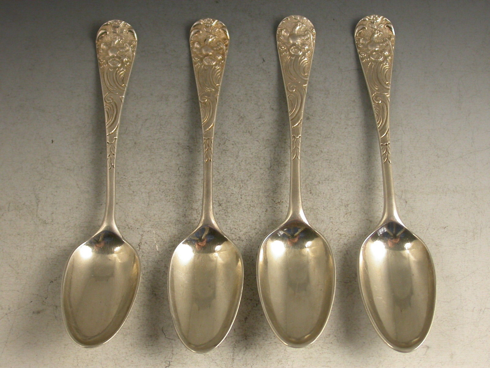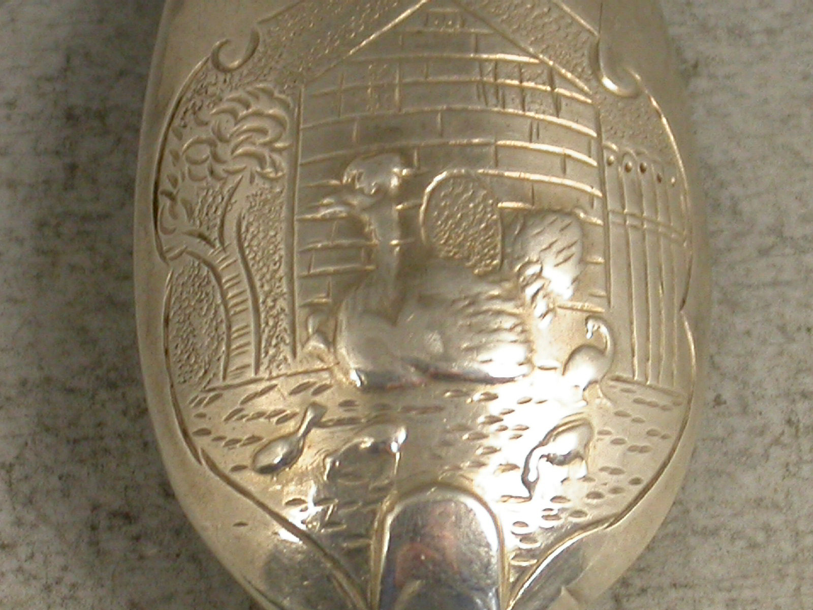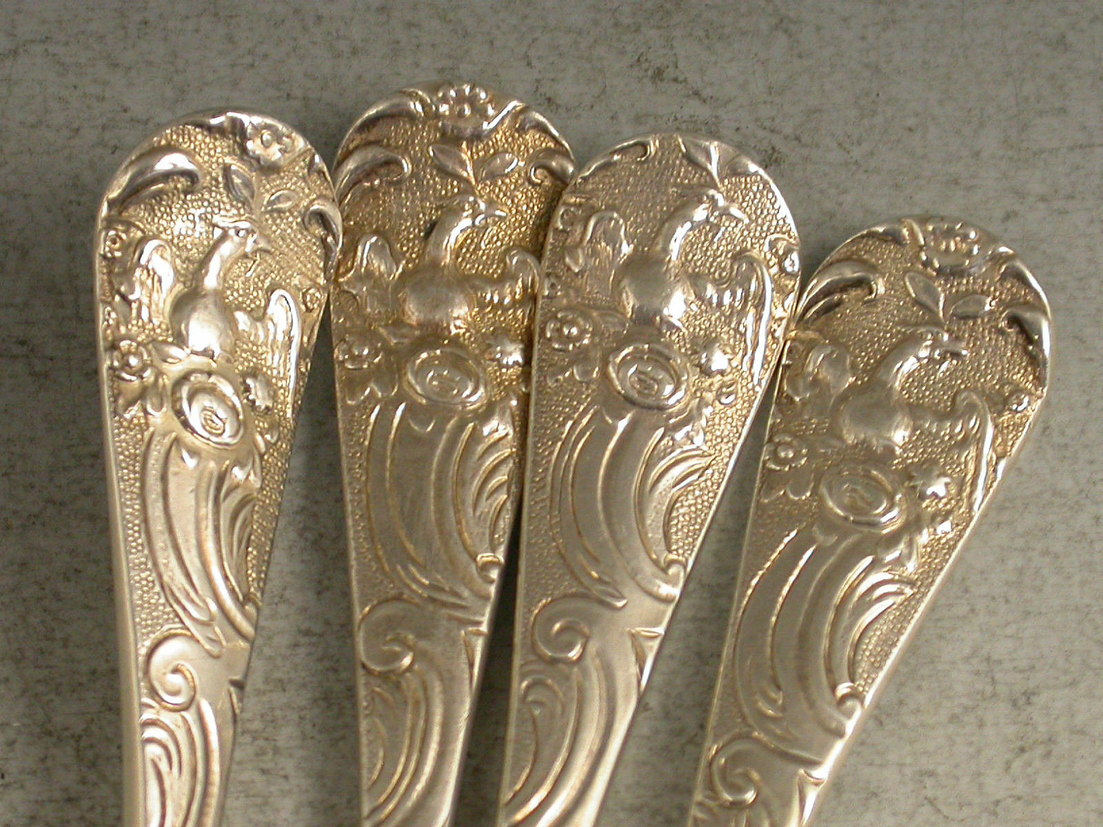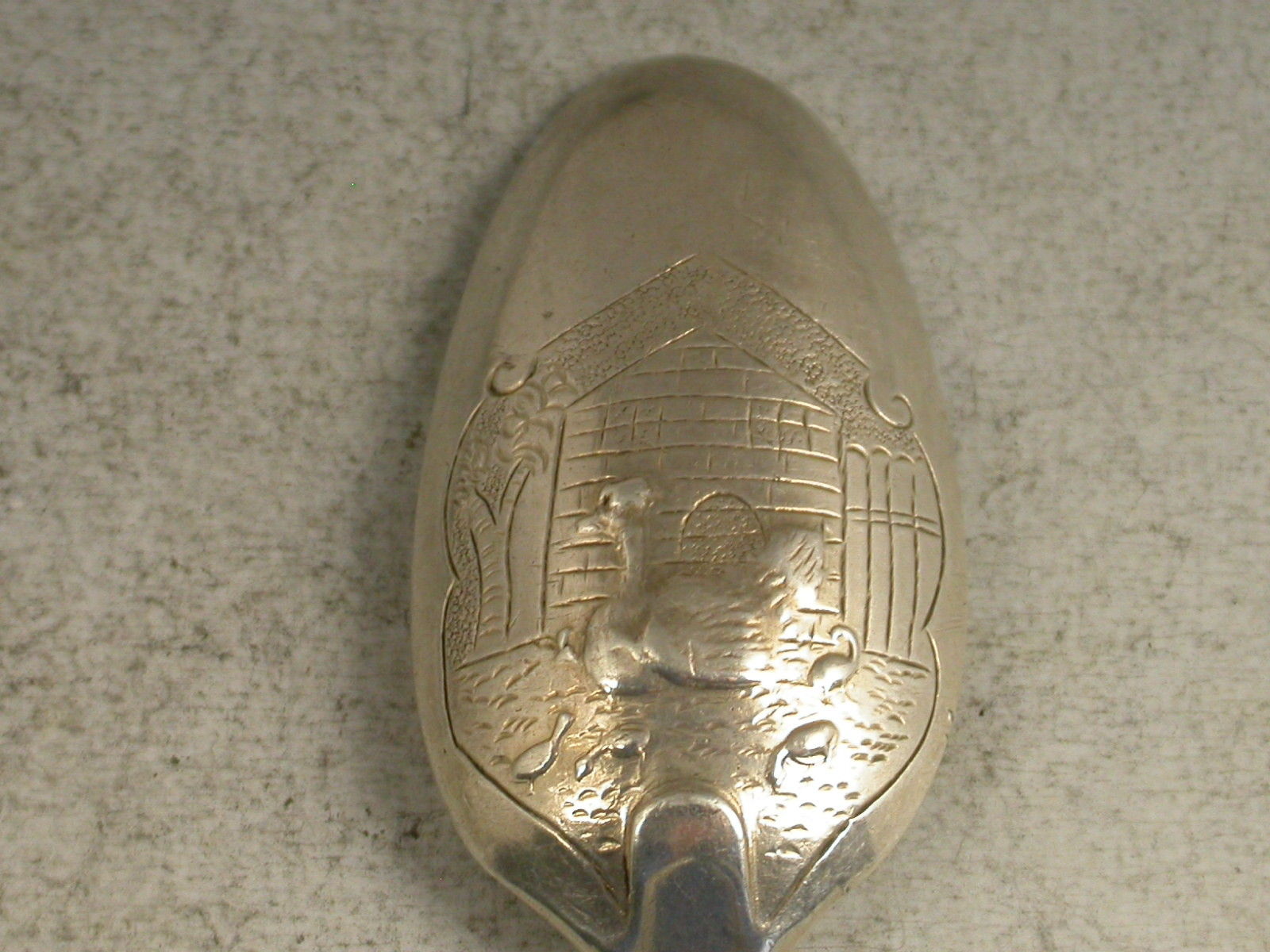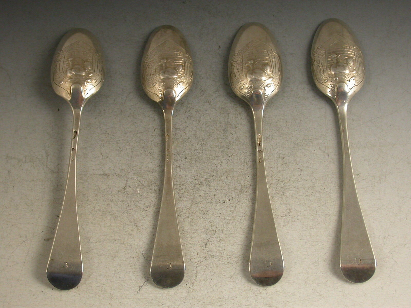 Set 4 Mid 18th Century 'Picture Front & Back' Teaspoons Hen & Chicks