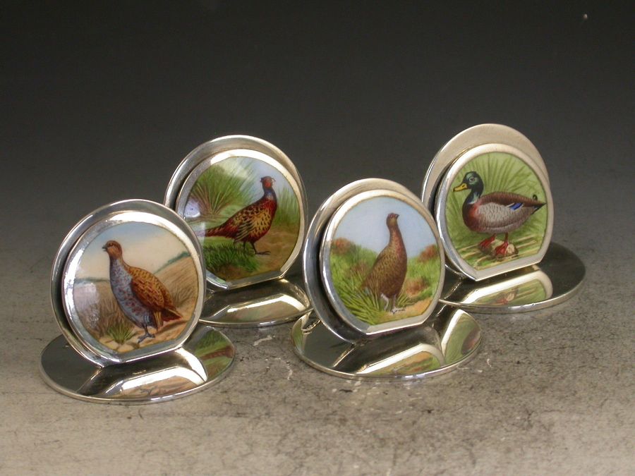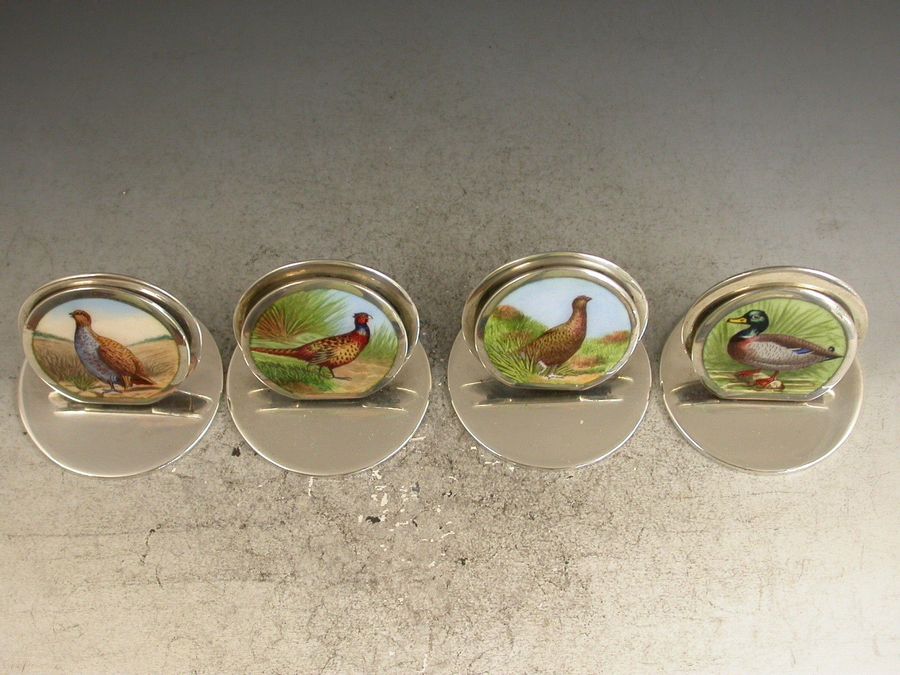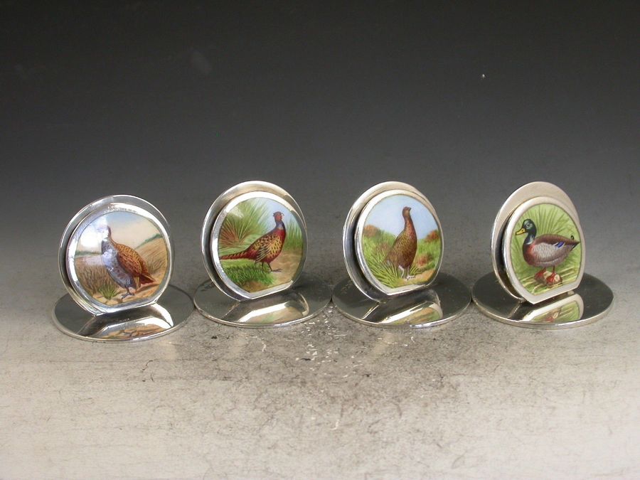 Set 4 Silver & Enamel Game Bird Menu Holders
