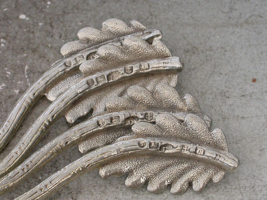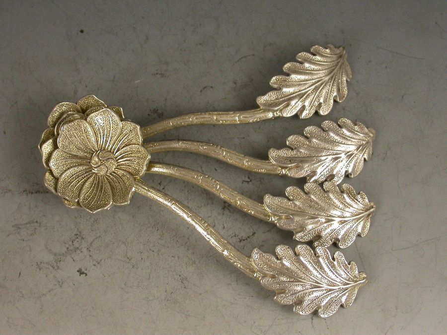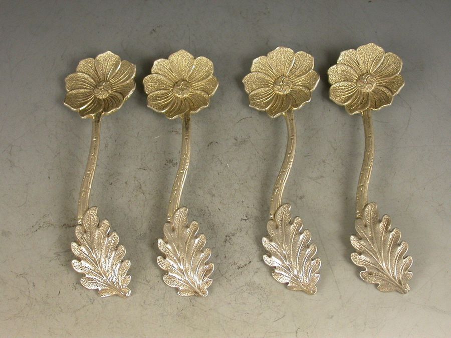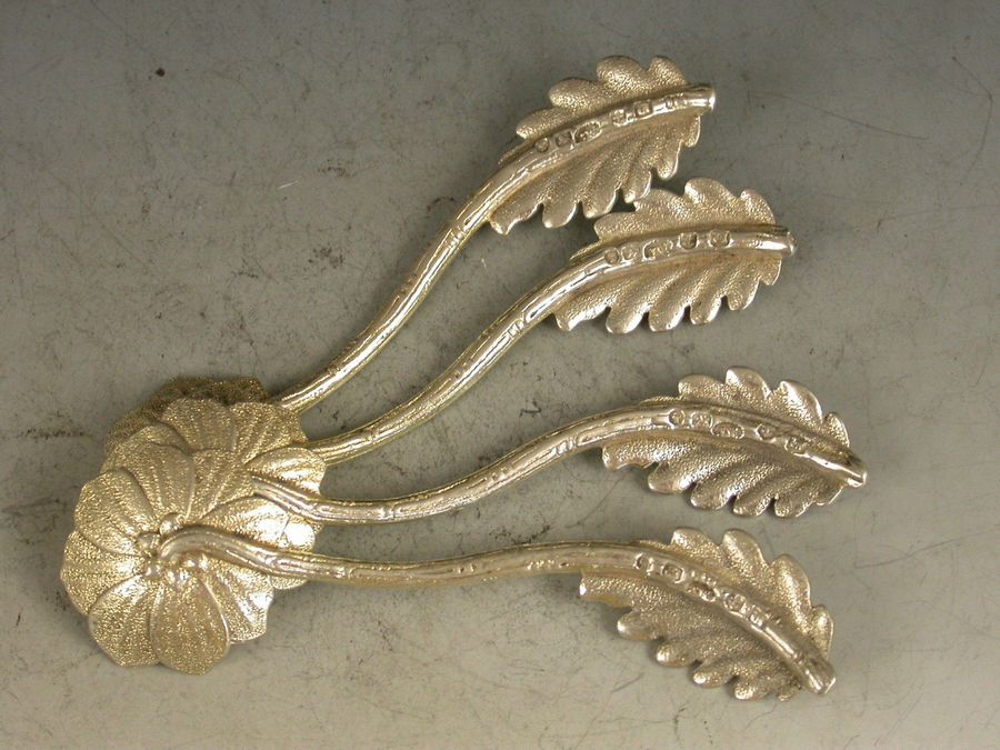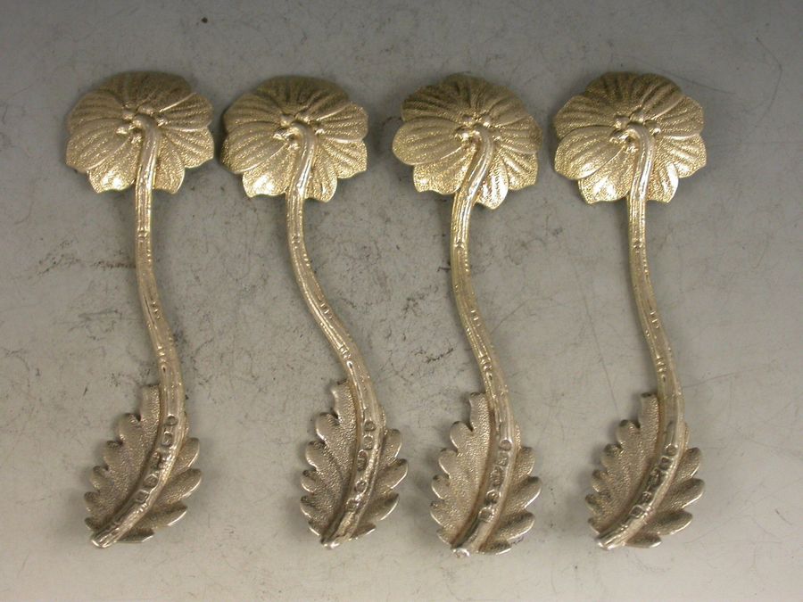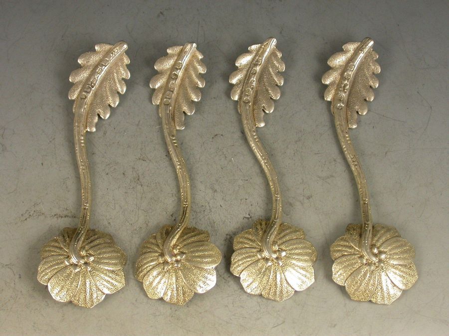 Set 4 Victorian Cast Silver Naturalistic Flower Salt Spoons