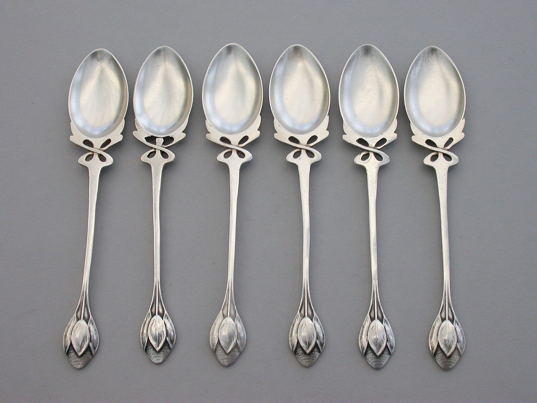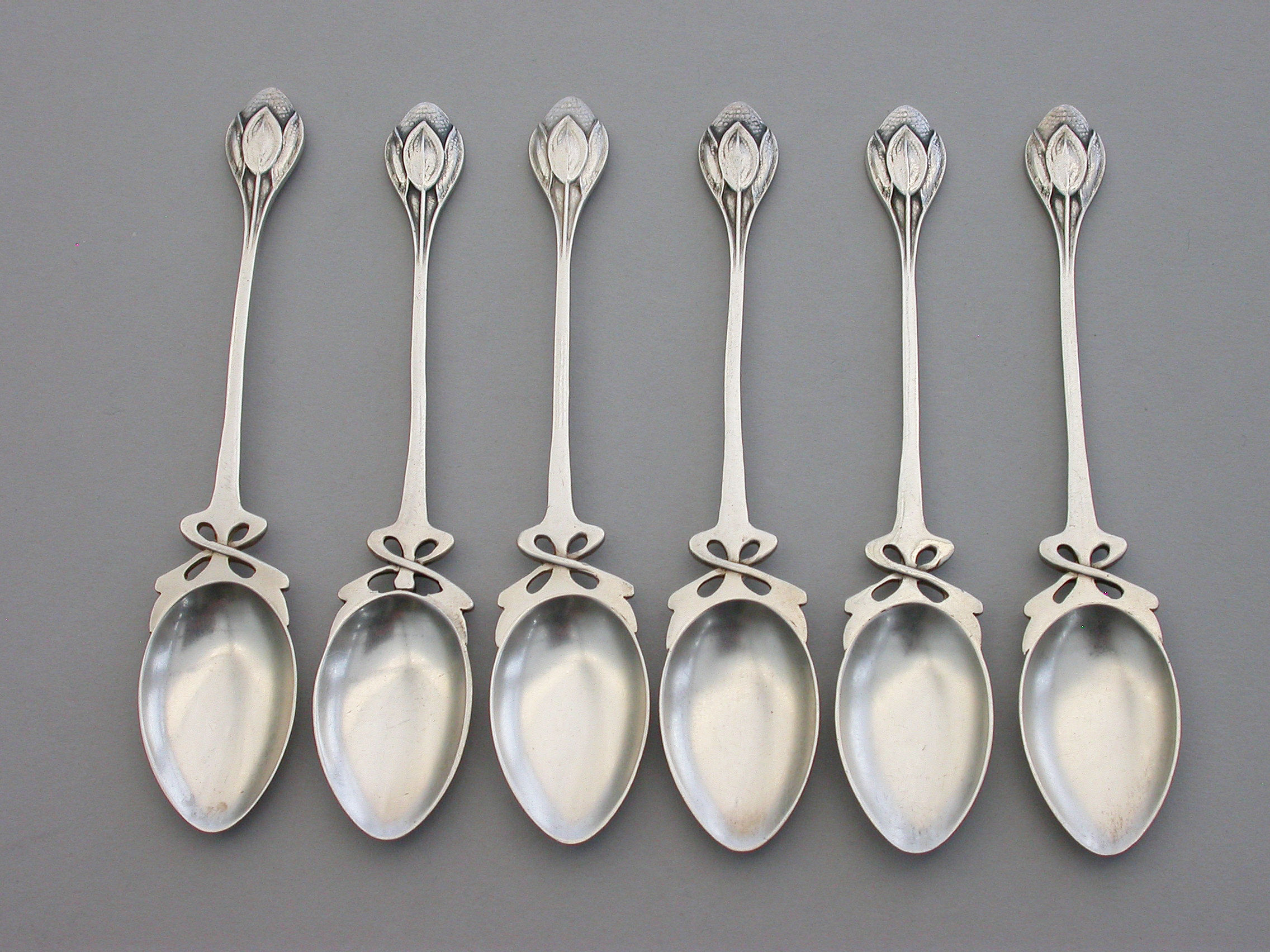 Set 6 Arts & Crafts Silver Teaspoons - Crocus Pattern, Archibald Knox