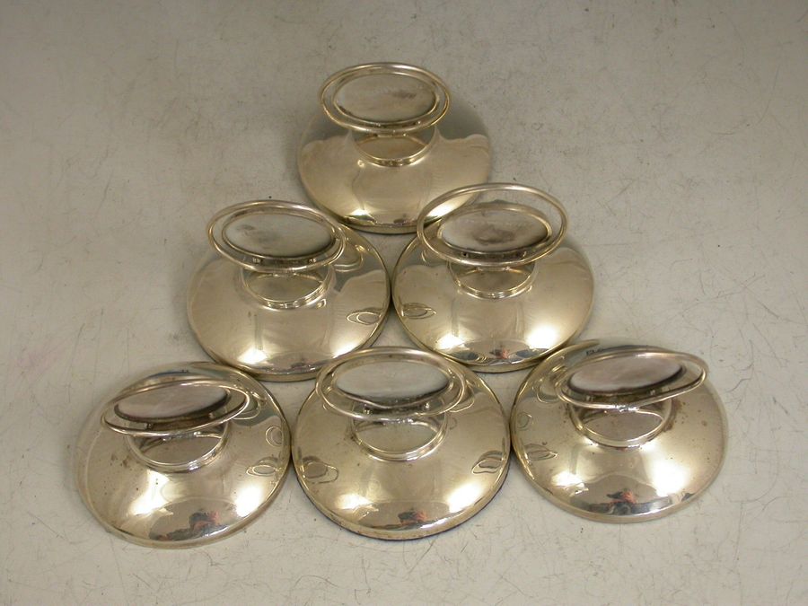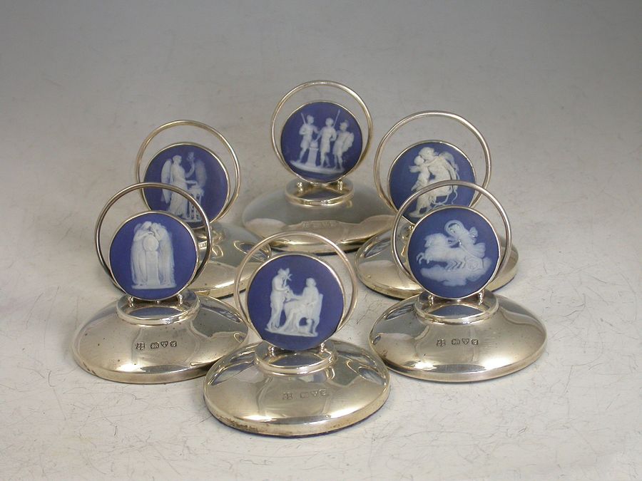 Set 6 Edwardian Silver Mounted Wedgwood Bosses Menu Holders