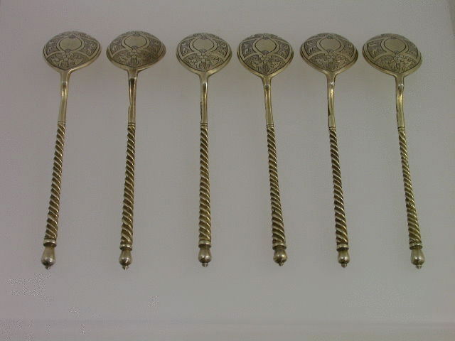 Set 6 Russian Silver Gilt Teaspoons