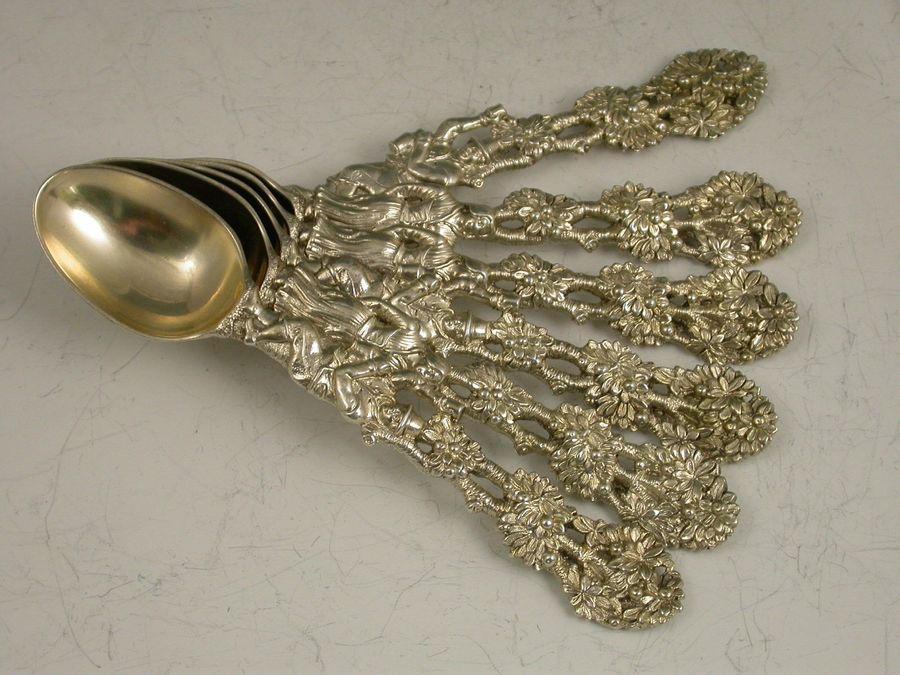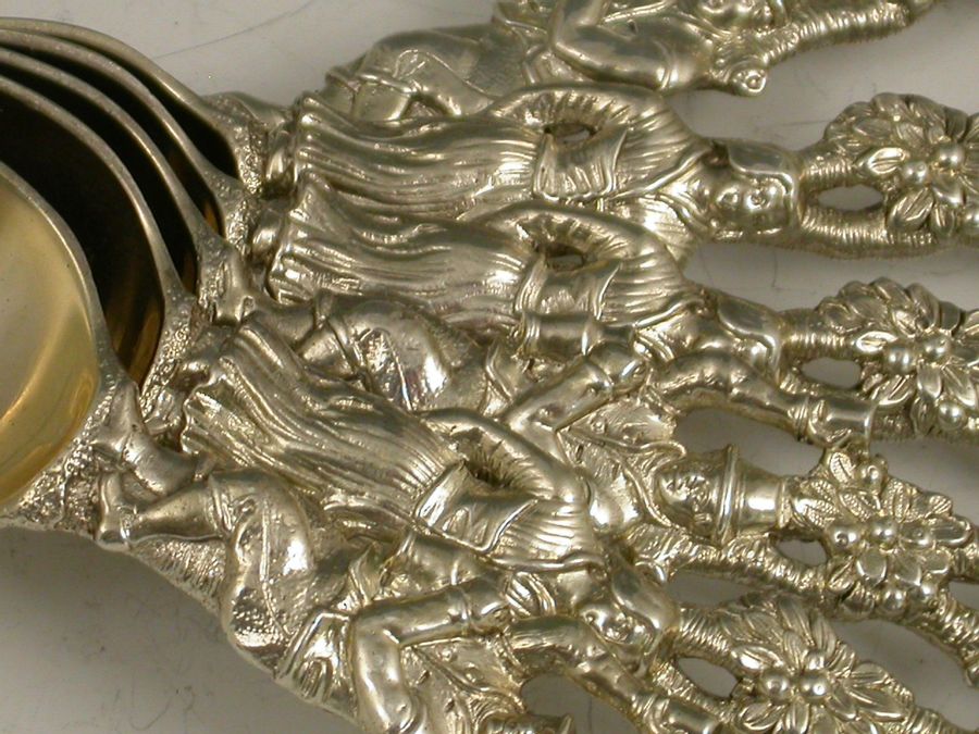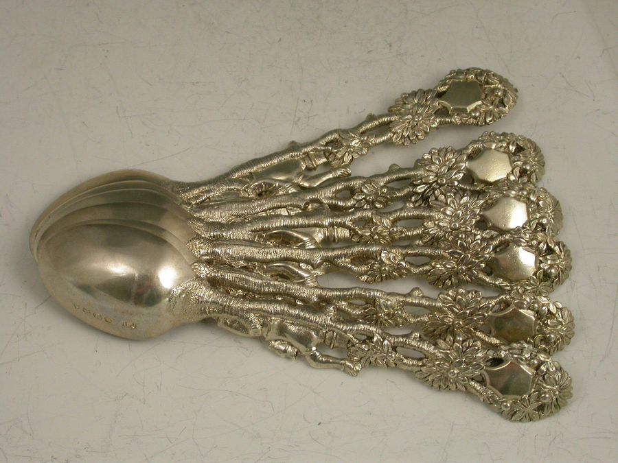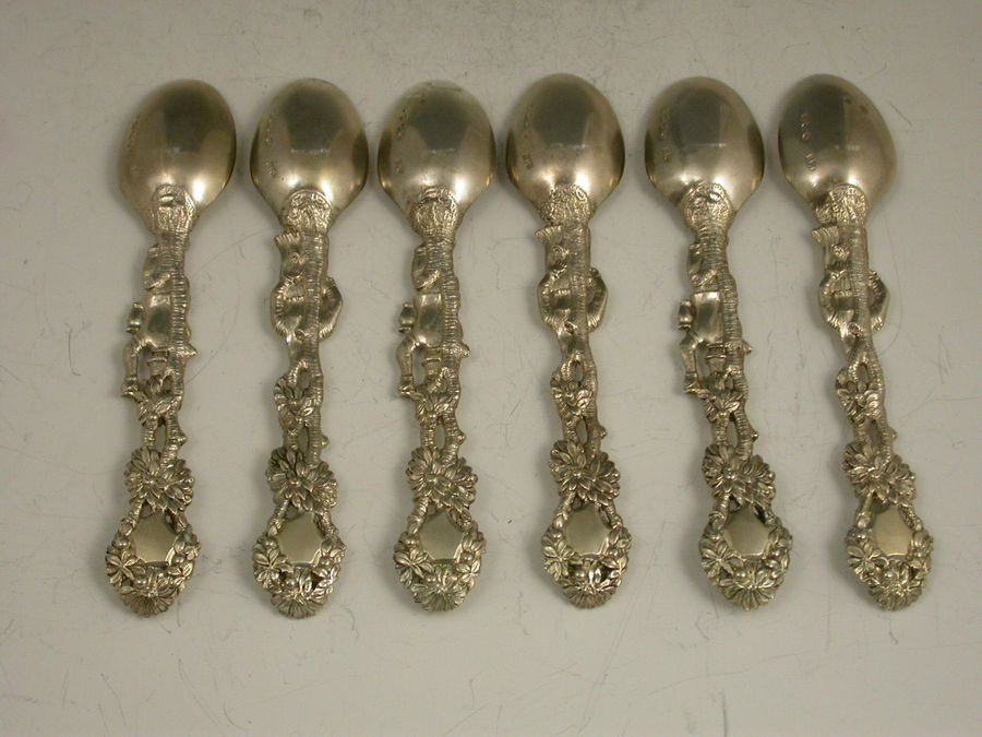Set 6 Victorian Cast Silver Naturalistic Teaspoons Dutch Teniers