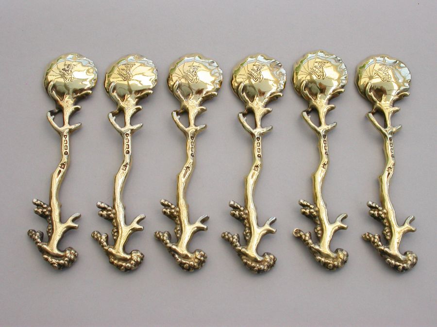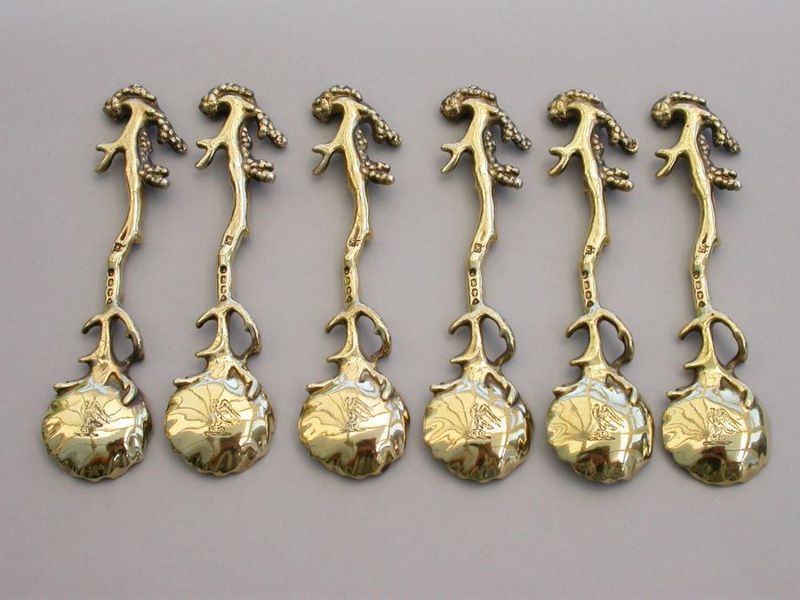 Set 6 Victorian Silver Gilt Nautical Salt Spoons
