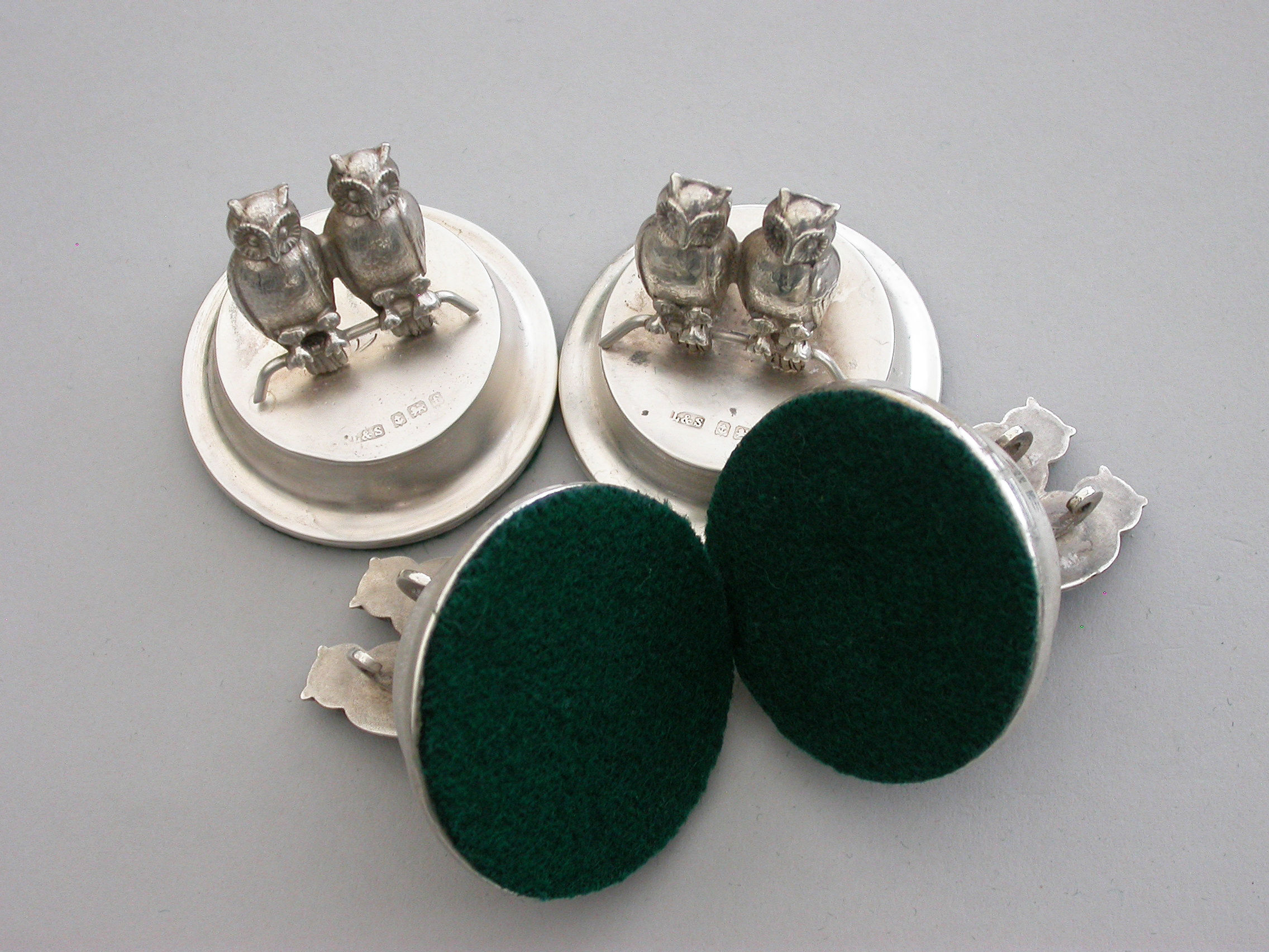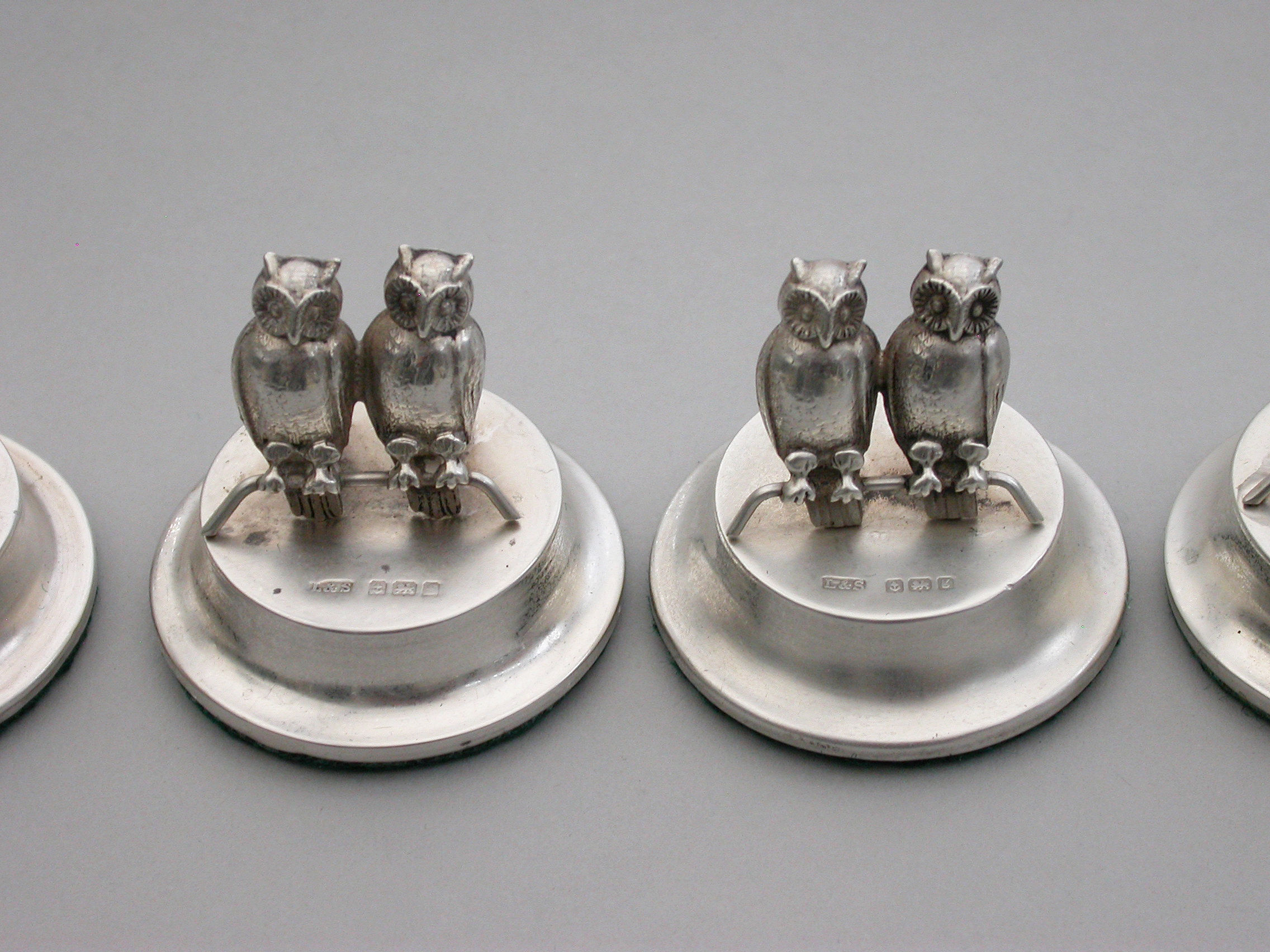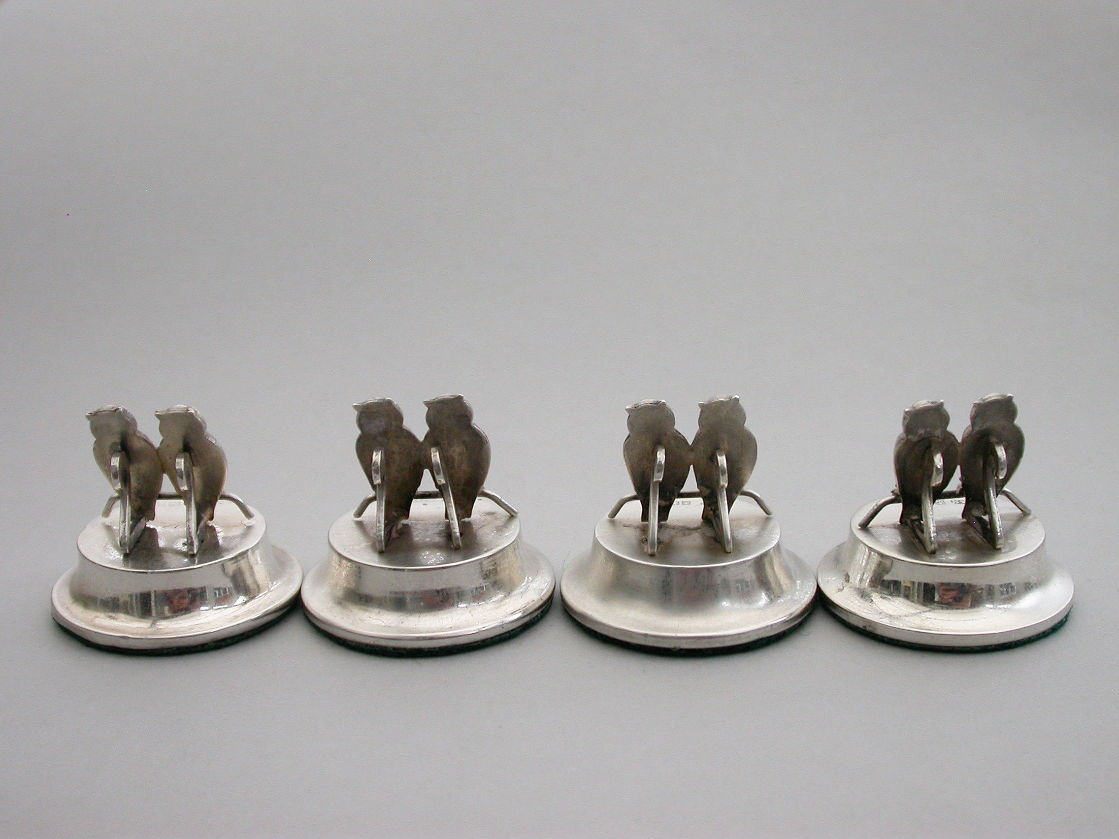 Set Four Edwardian Silver Owls Menu Holders