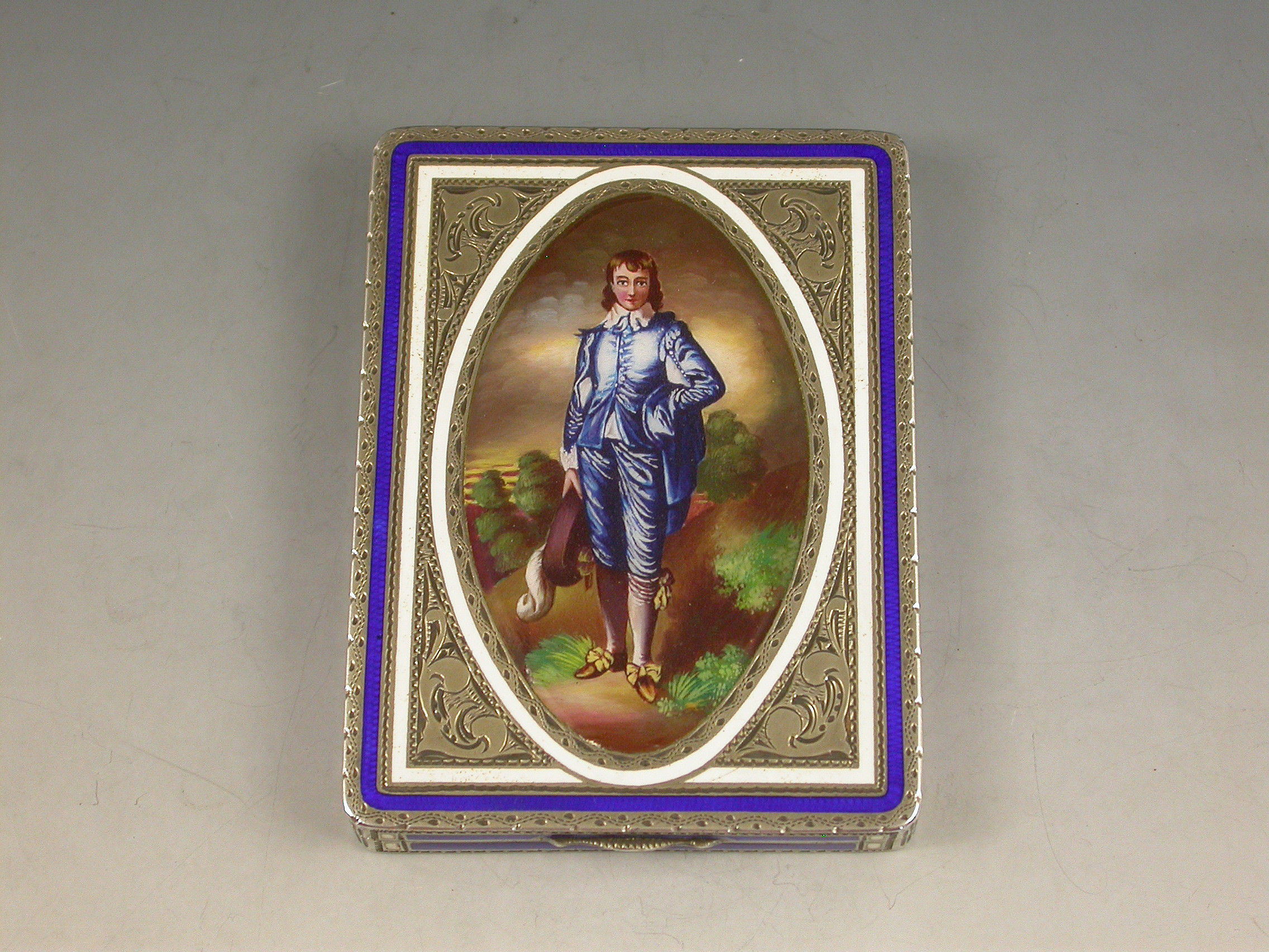 George V Silver & Enamel 'Blue Boy' Cigarette Case Gainsborough