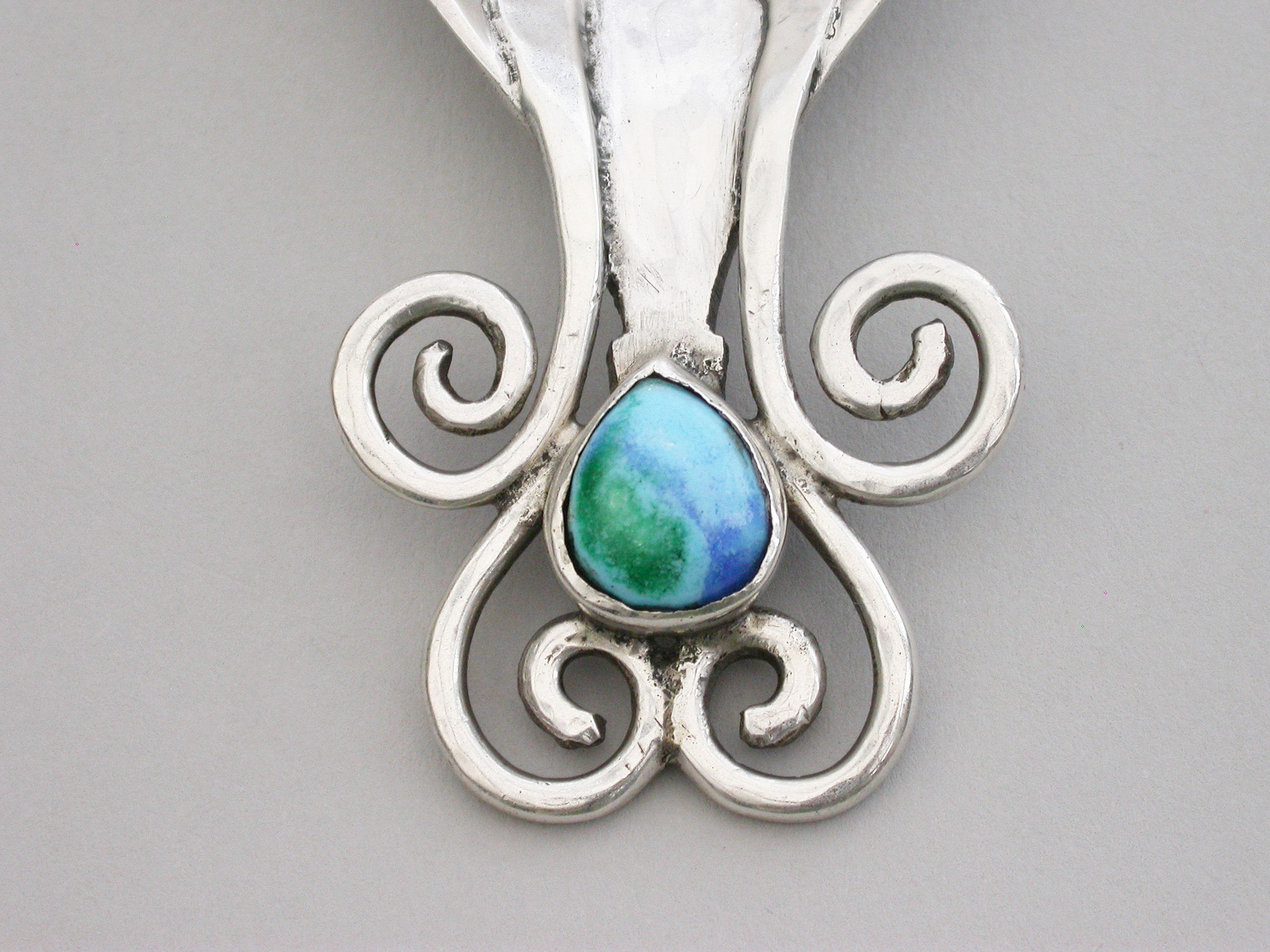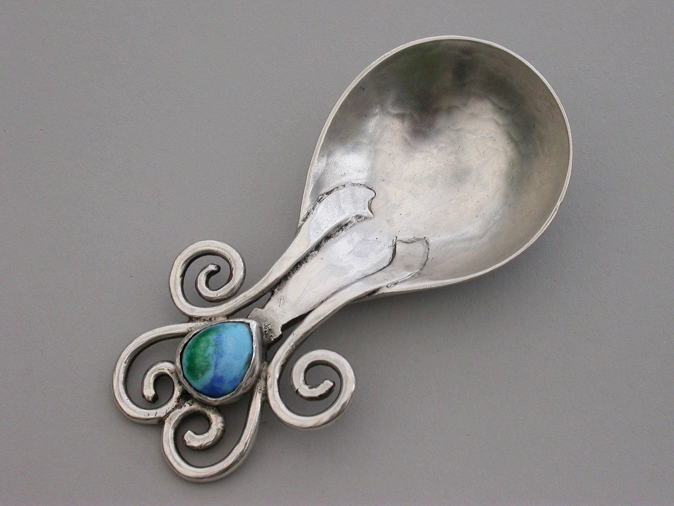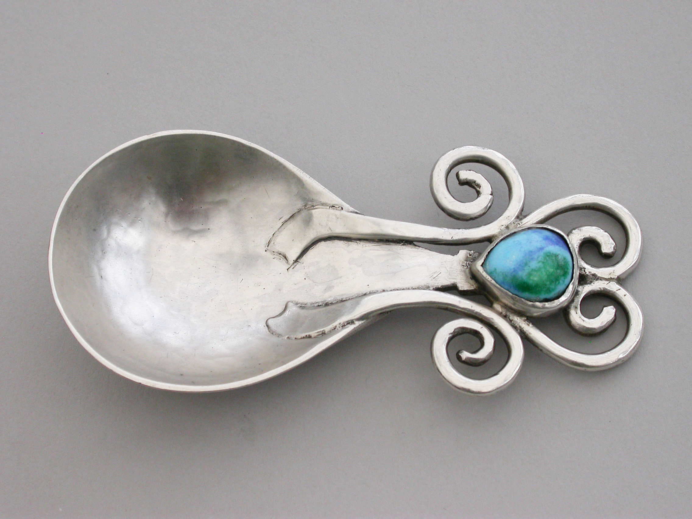 Arts & Craft Cast Silver Caddy Spoon - Enamel Boss