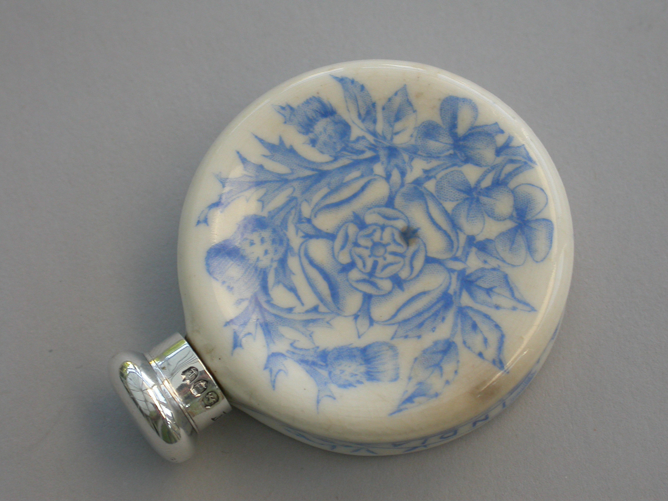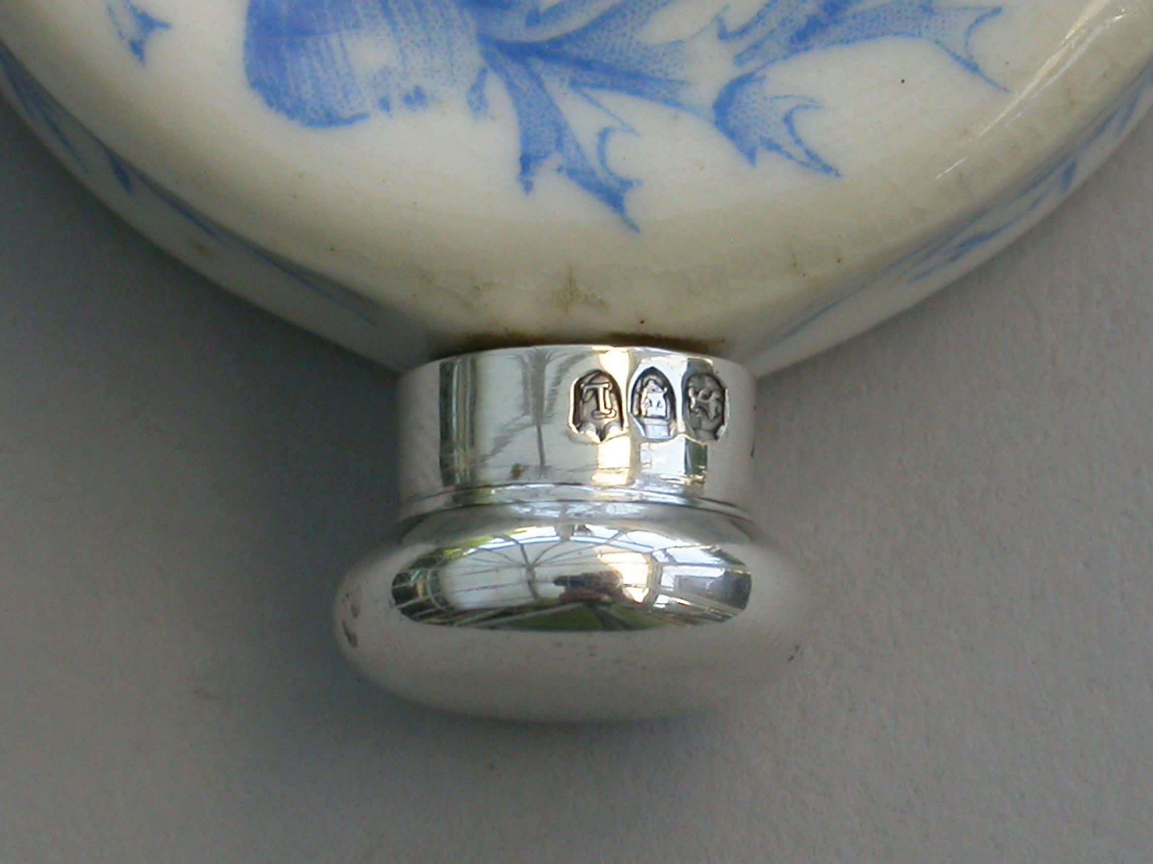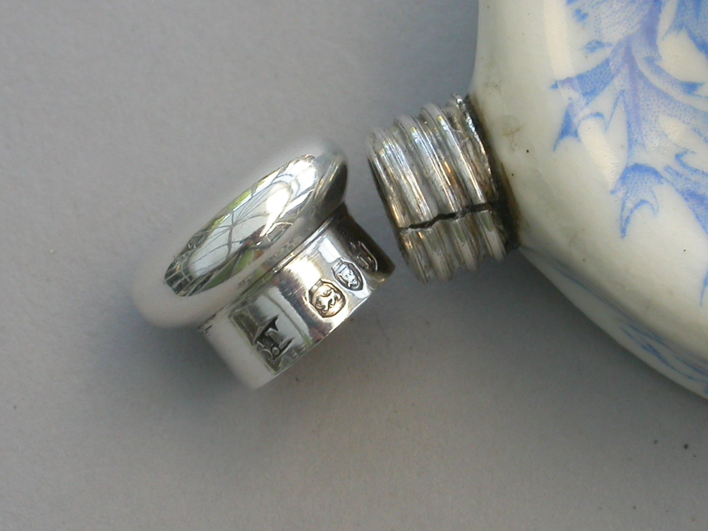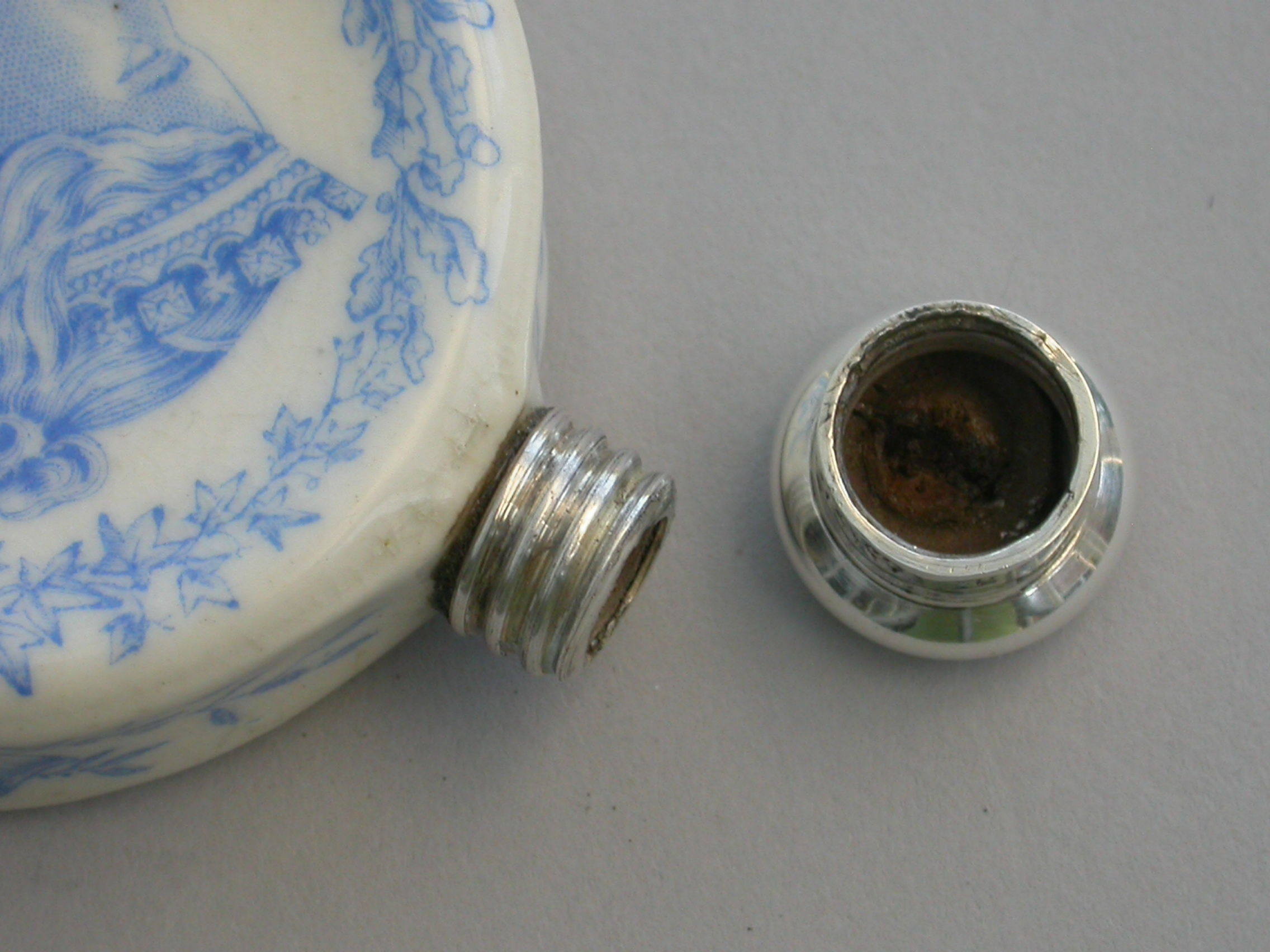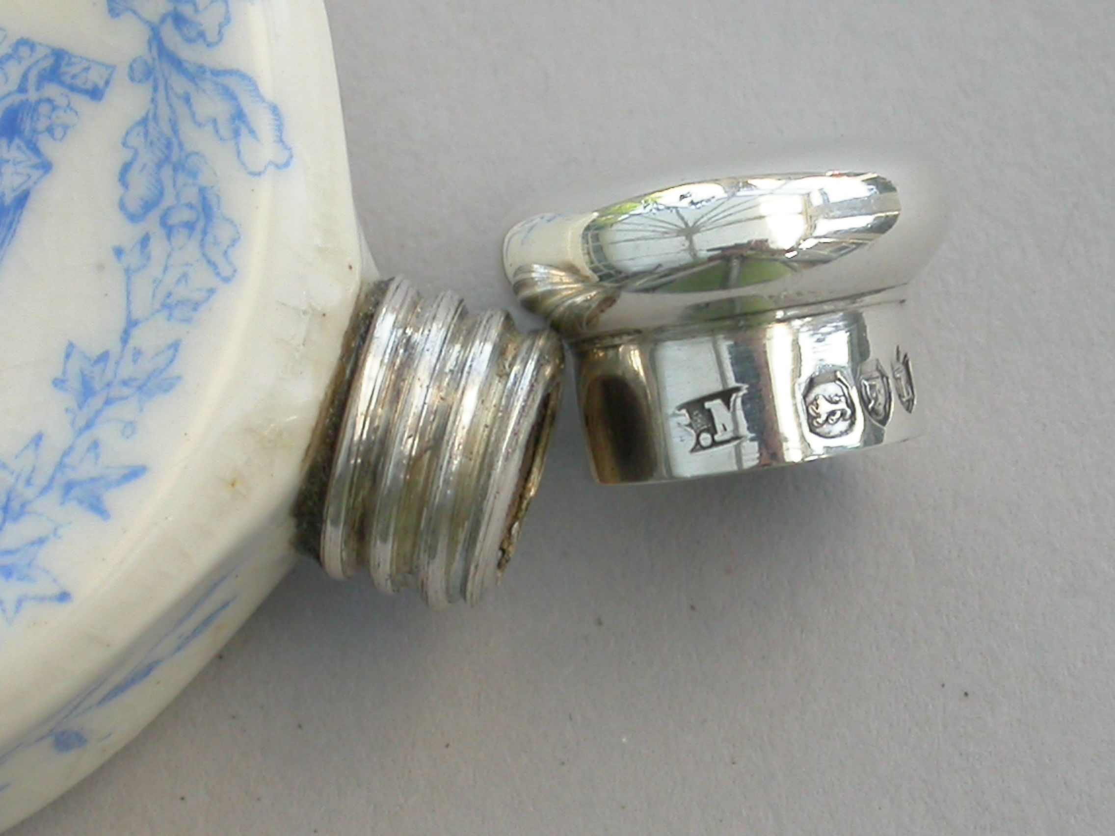 In good condition with no damage or repair, some minor under glaze staining and separation of the threaded silver collar would have been in the making.