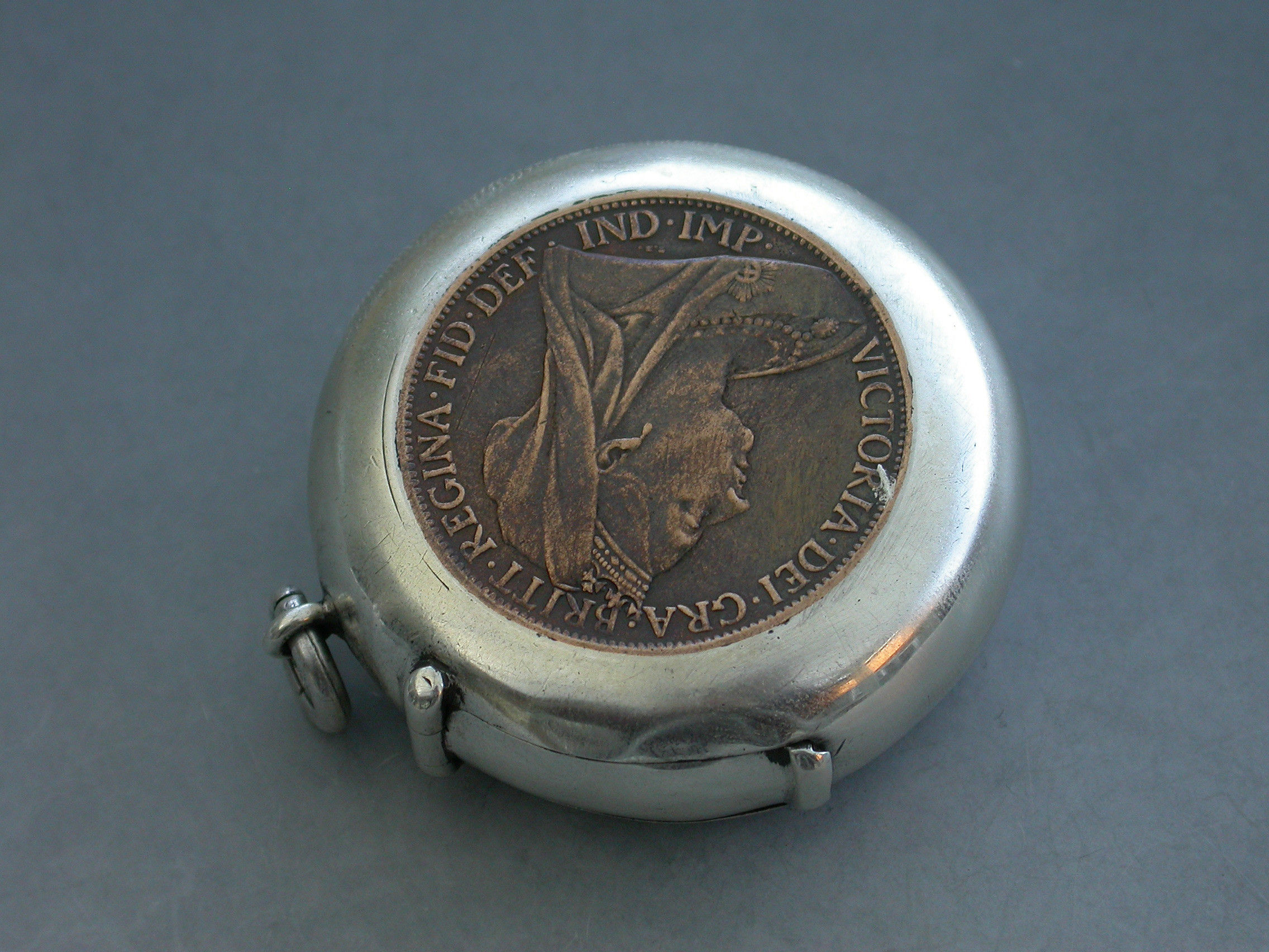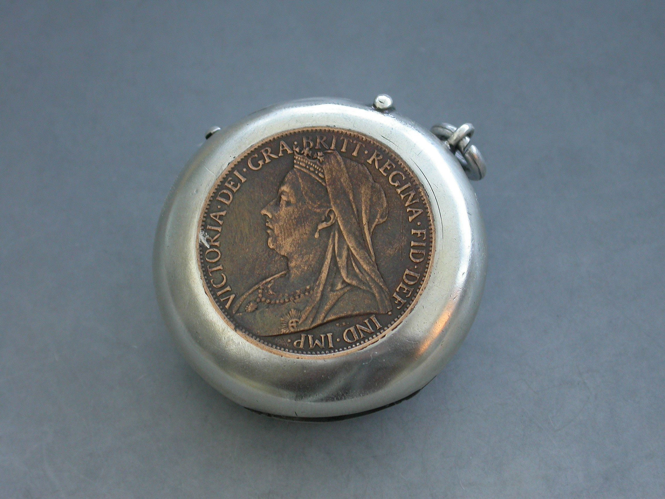 Silver Mounted Victorian Copper Penny Vesta Case