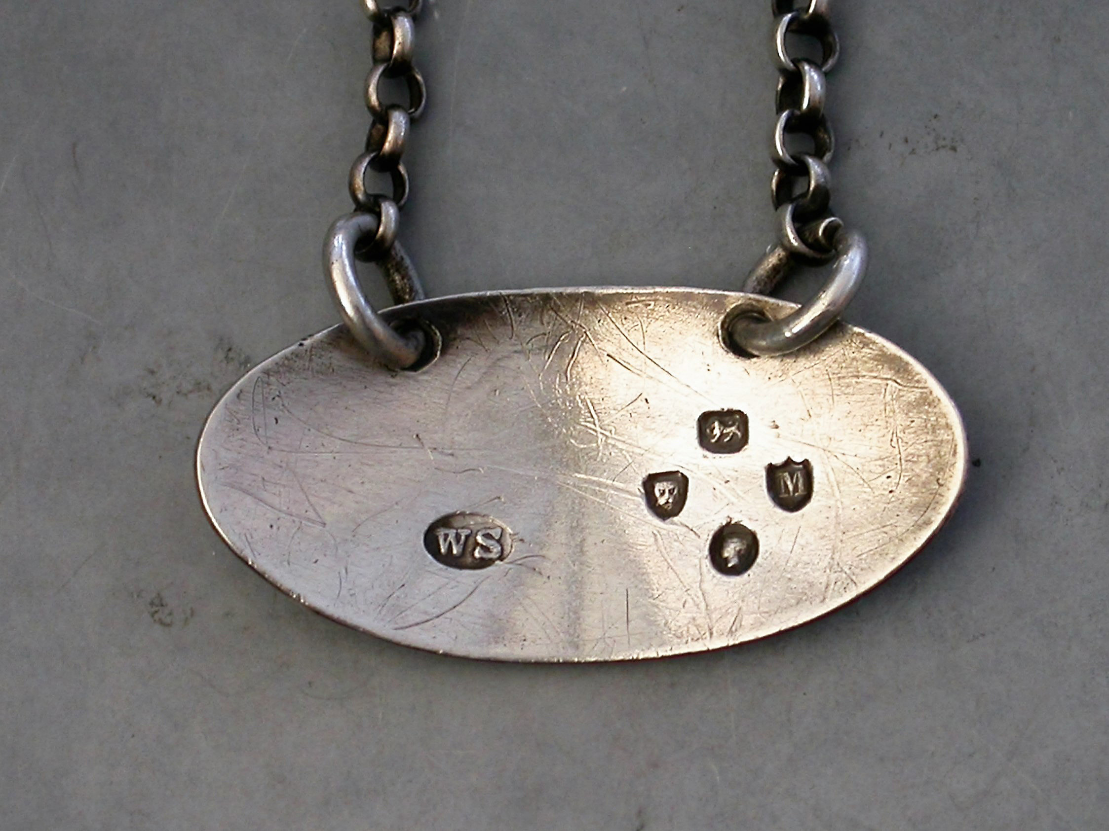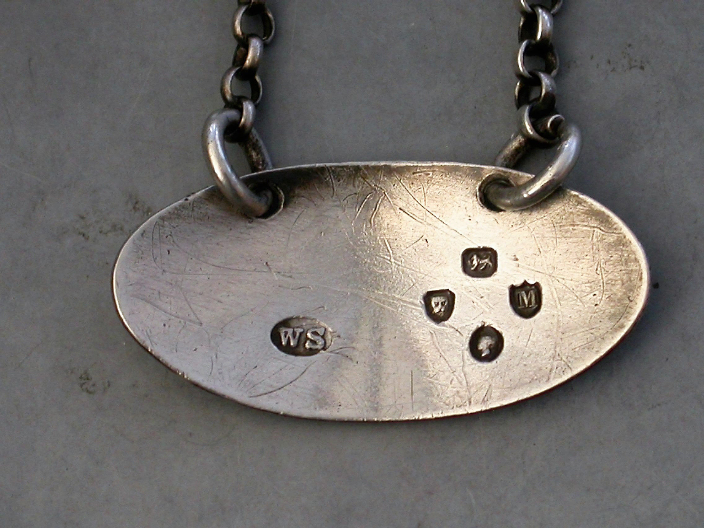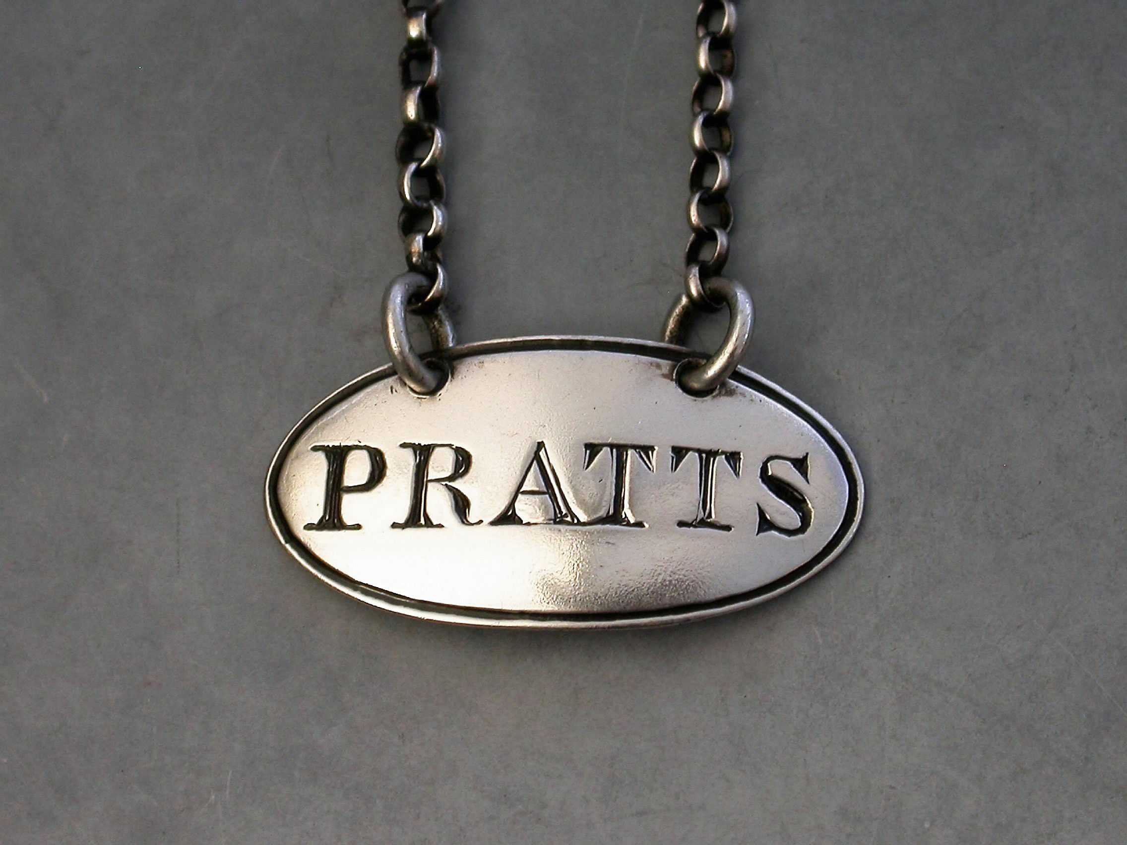 An extremely rare Victorian silver Sauce Label of plain oval form with signal reeded border, incised for Pratts.