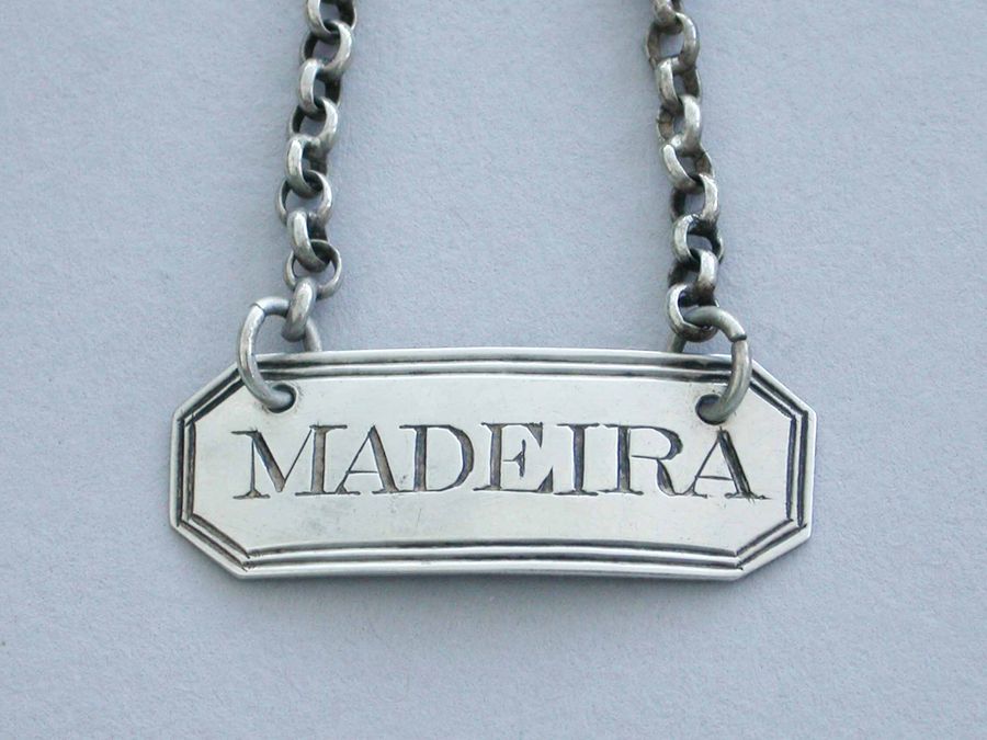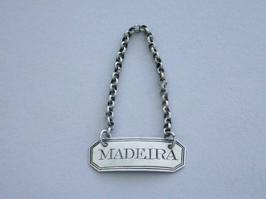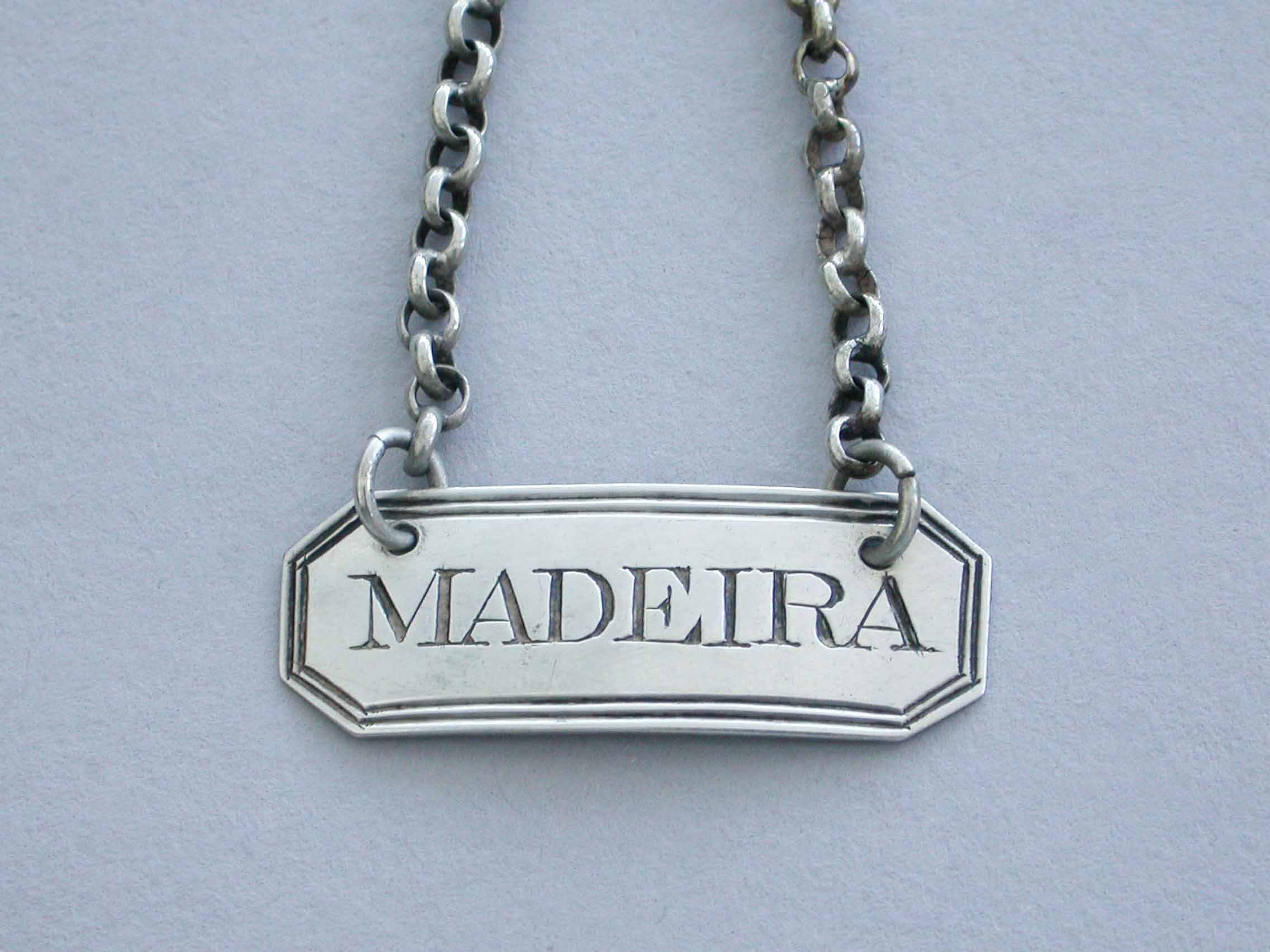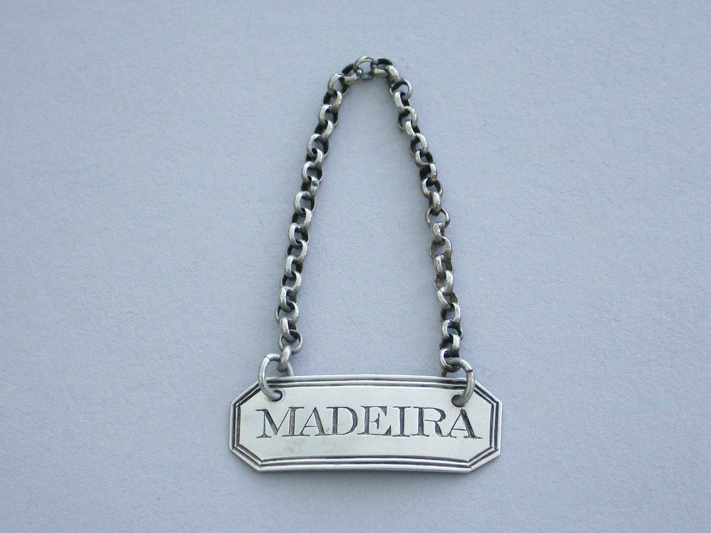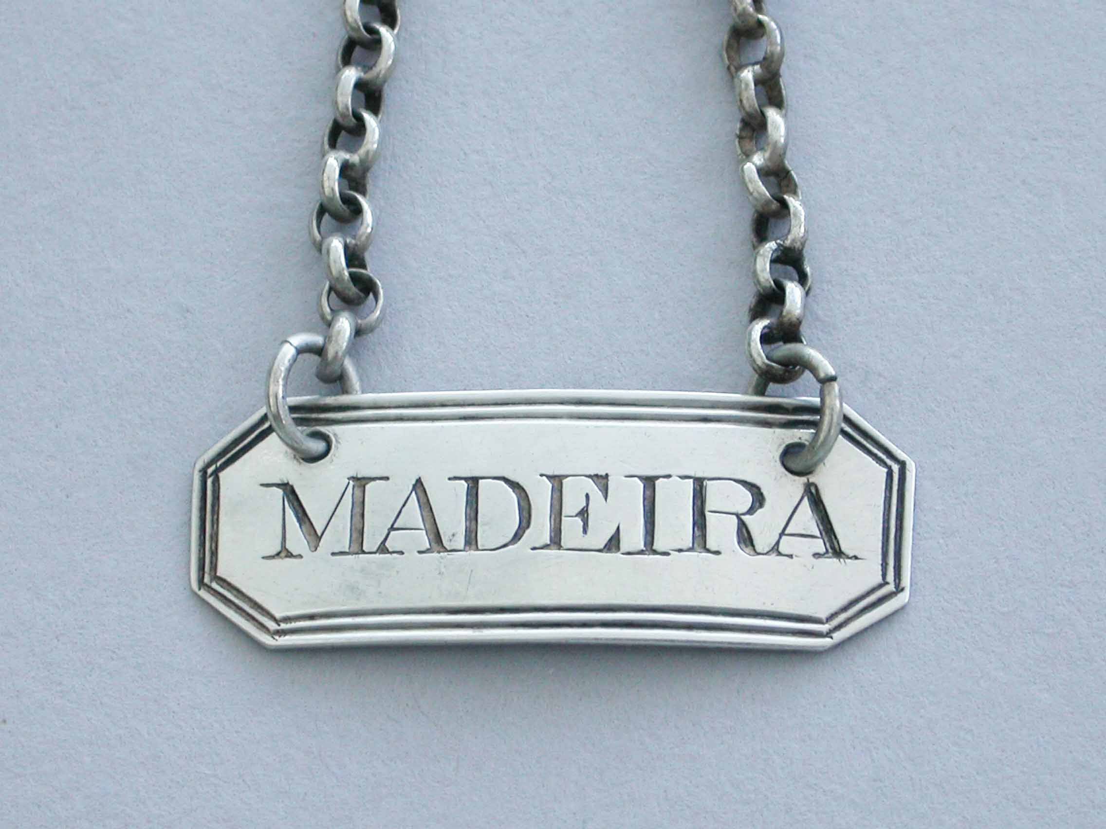 A small George III silver Wine Label of narrow rectangular form with cut-corners and double reeded border, incised for Madeira.